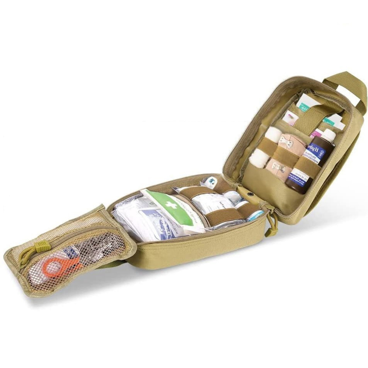Taktinė pirmosios pagalbos vaistinėlė yra pagaminta iš tvirto ir vandeniui atsparaus Cordura 600D audinio, kuris yra atsparus dėvėjimui ir vandeniui.
