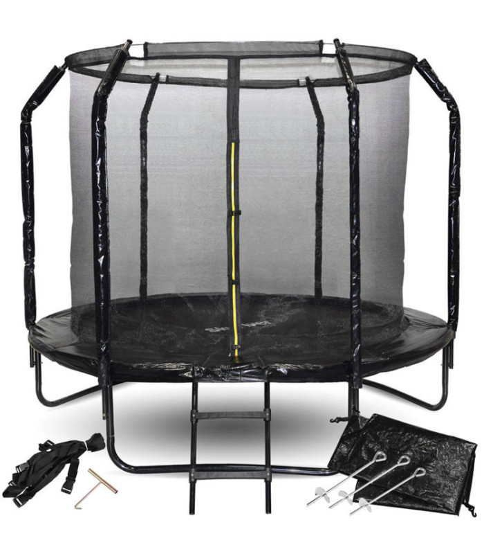 Sodo Tramplynas SkyFlyer Black 244 cm su tinklu ir profiliuotais stulpeliais