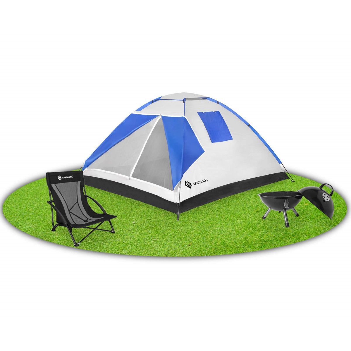Keturių vietų mėlyna turistinė palapinė su tinkleliu nuo uodų Springos PT008