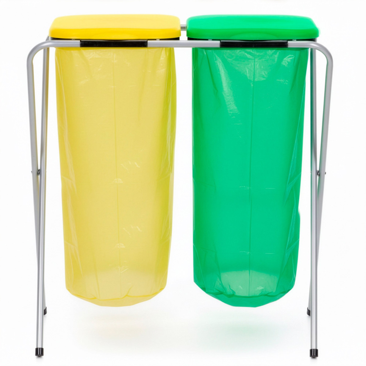 Praktiškas ir patvarus atliekų rūšiavimo stovas padeda patogiai ir tvarkingai rūšiuoti atliekas namuose, biure ar kitoje erdvėje. Šis 2 skyrių atliekų rūšiavimo stovas pagamintas iš metalo ir PP plastiko, todėl yra lengvas, stabilus ir patikimas kasdieniam naudojimui.