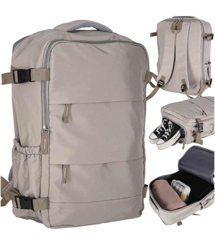 Trijų skyrių kelioninis kuprinis pilkos spalvos 45 x 30 cm