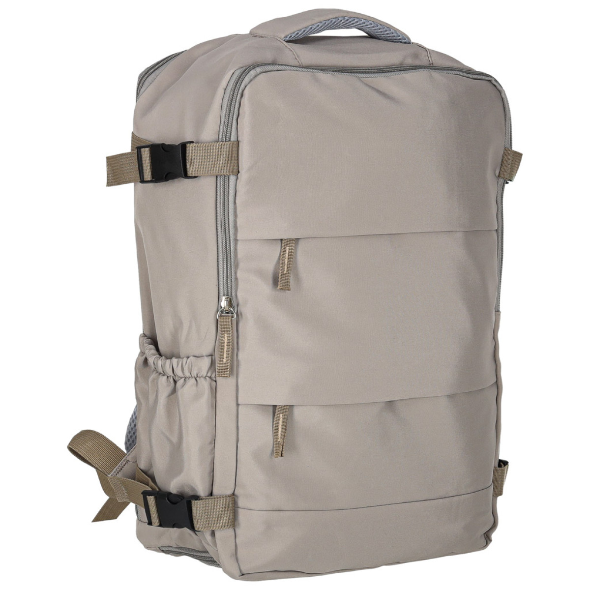 Daugiafunkcinis kelioninis kuprinis bus puikus pasirinkimas tiek savaitgaliams, tiek atostogoms. Trys skyriai ir daugybė kišenių leidžia tiksliai ir išsamiai susipakuoti. Šoninės kišenės su gumyte talpina termosą ar vandens butelį, o priekinės užsegamos kišenės skirtos smulkiesiems aksesuarams.