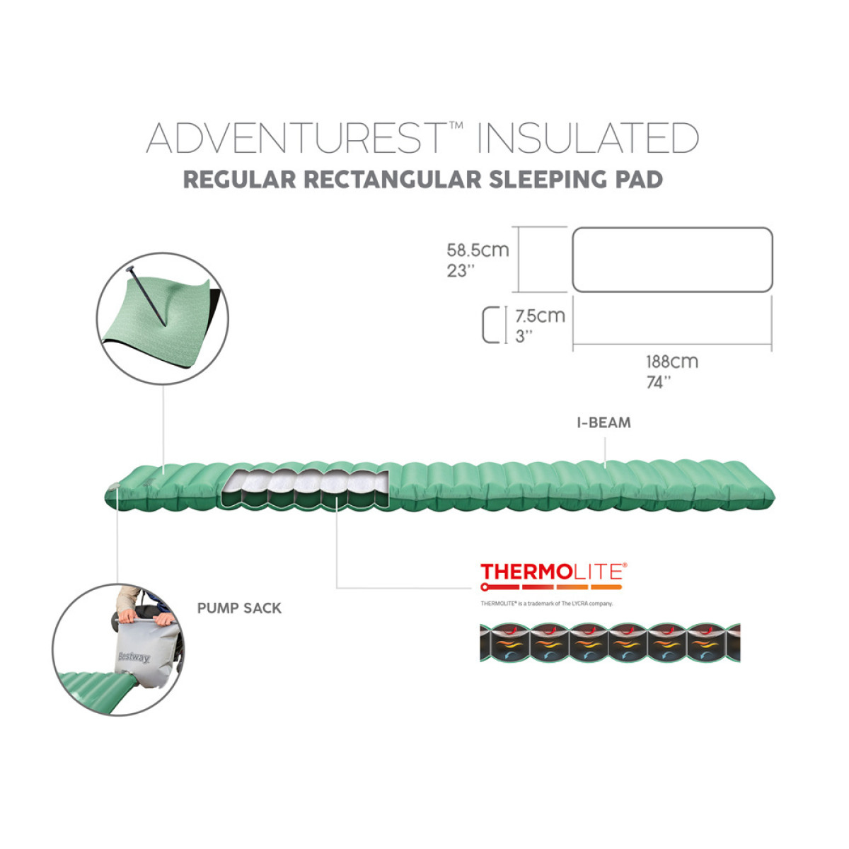 Bestway pripučiamas kilimėlis čiužinys AdventuRest 188 x 58,5 x 7,5 cm