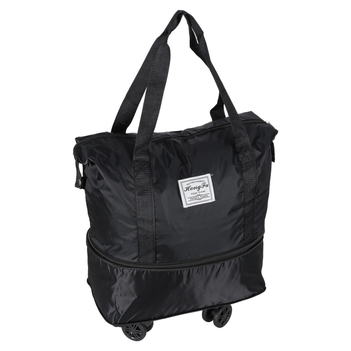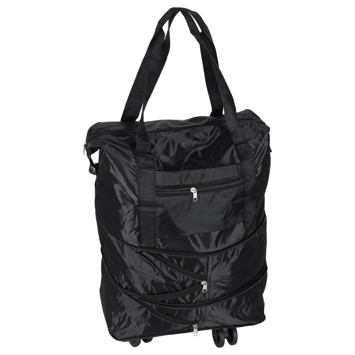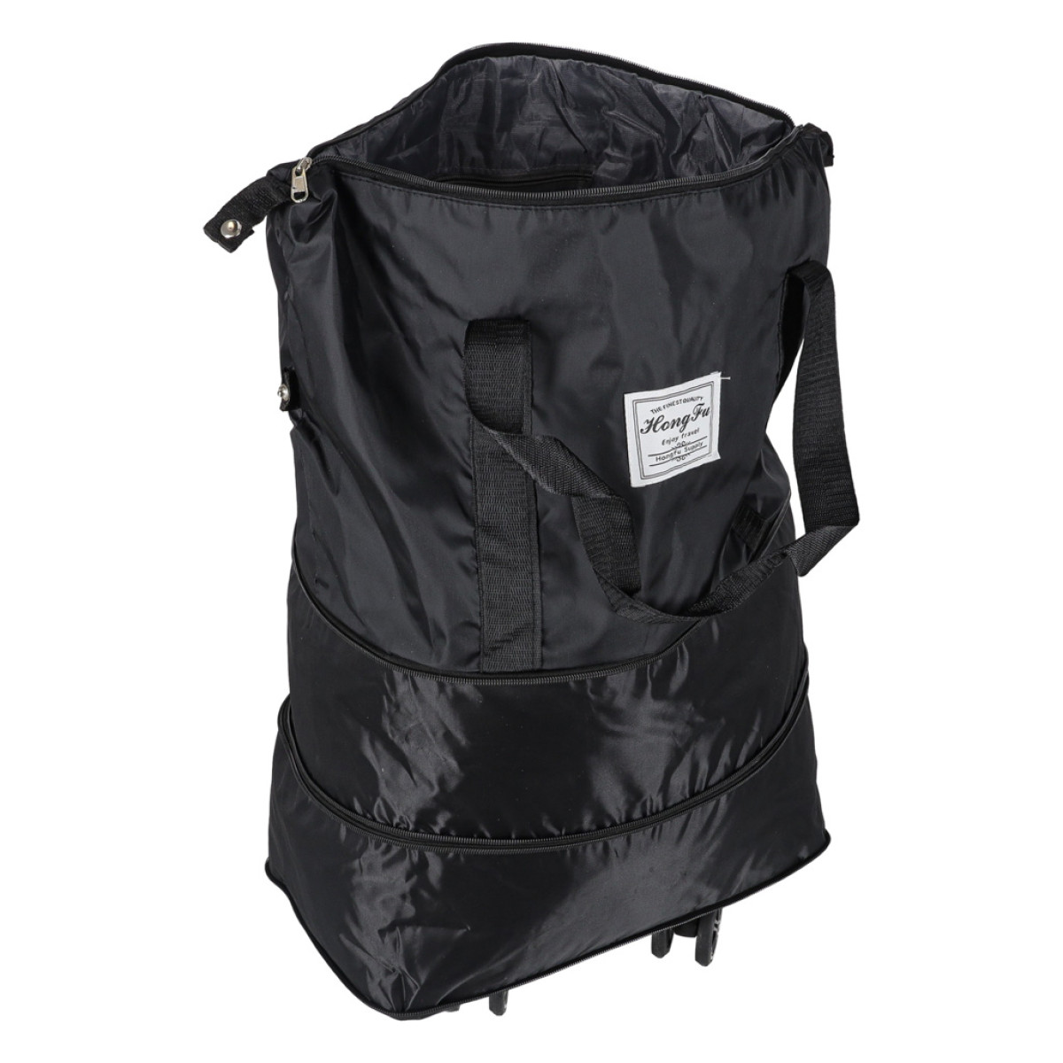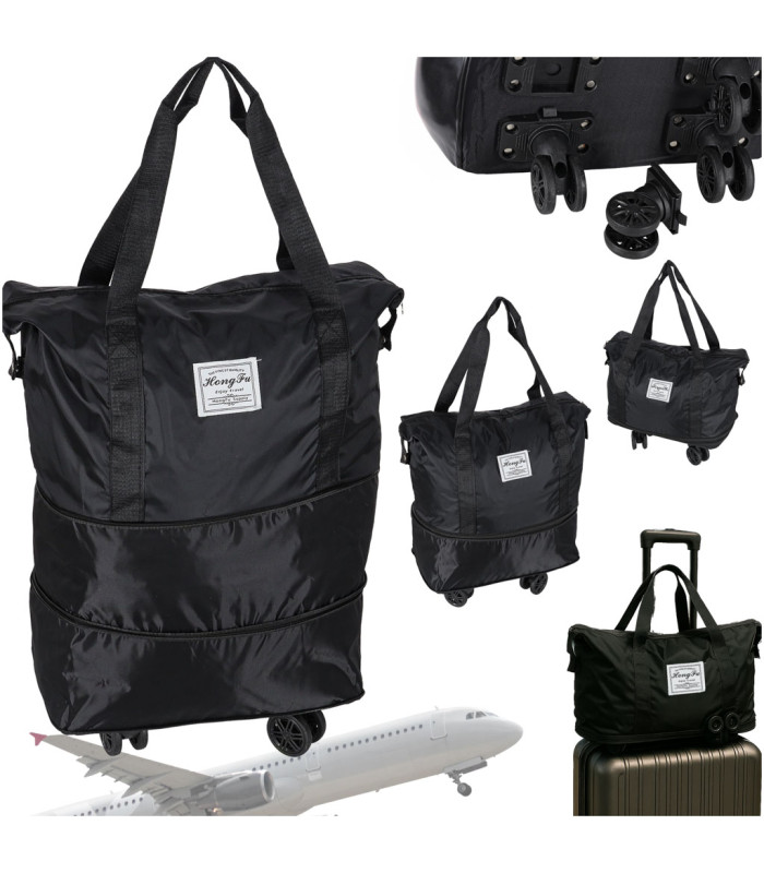 Kompaktiška kelioninė sulankstoma juoda kuprinė su ratukais, 3 dydžiai