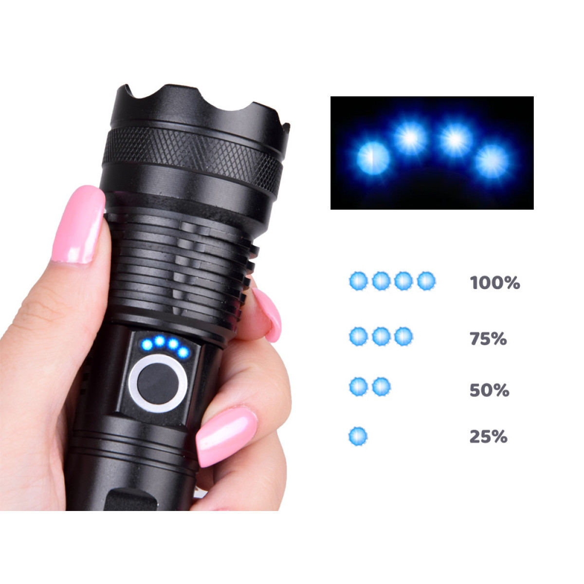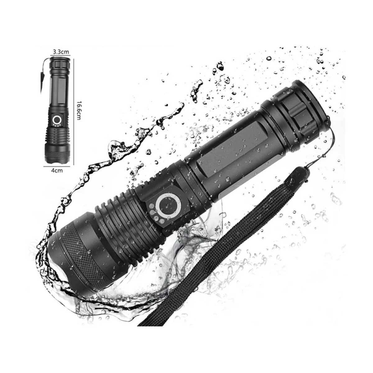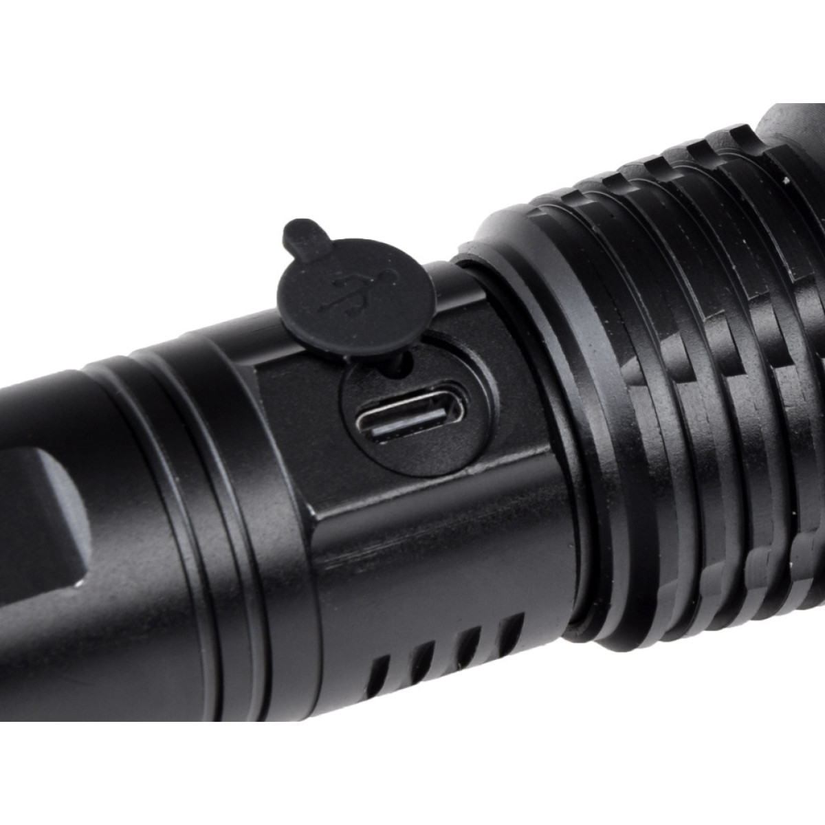 Galingas LED žibintuvėlis su USB įkrovimu ir atsparumu vandeniui SP0799