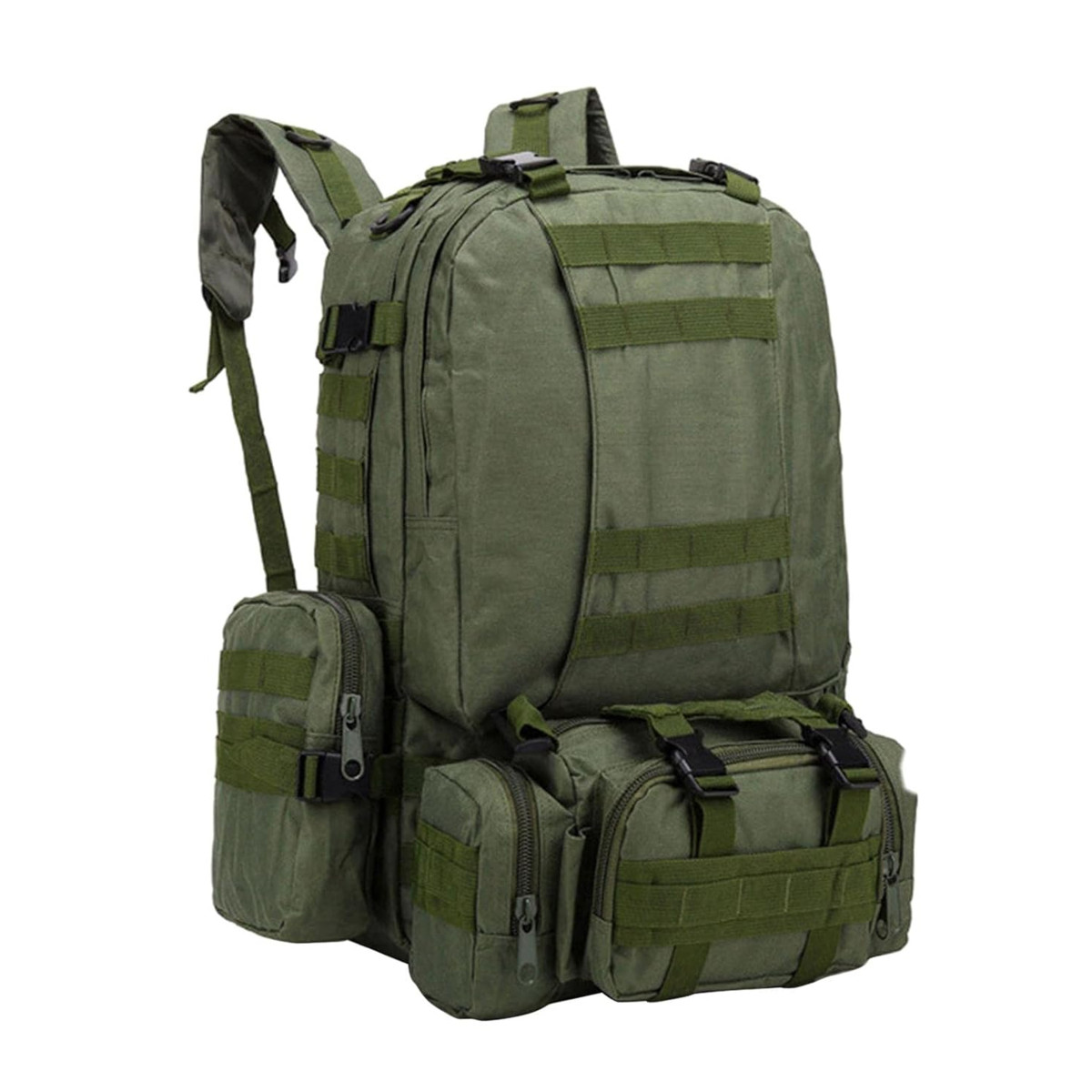 Taktinė karinė kuprinė 50L su papildomais priedais 4-in-1, žalia spalva