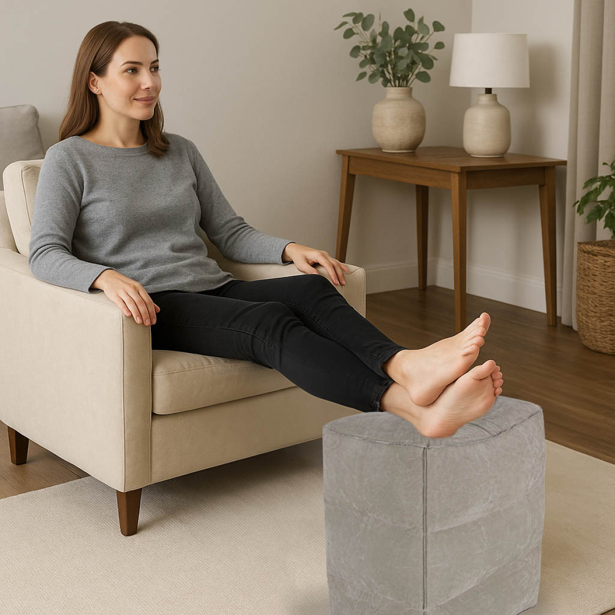 - Patogi pripučiama pufa - jos minkštas ir malonus prisilietimui paviršius suteikia sėdėjimo malonumą. Puikus poilsio taškas, kuris taip pat veikia kaip praktiškas pakojis po ilgos dienos.