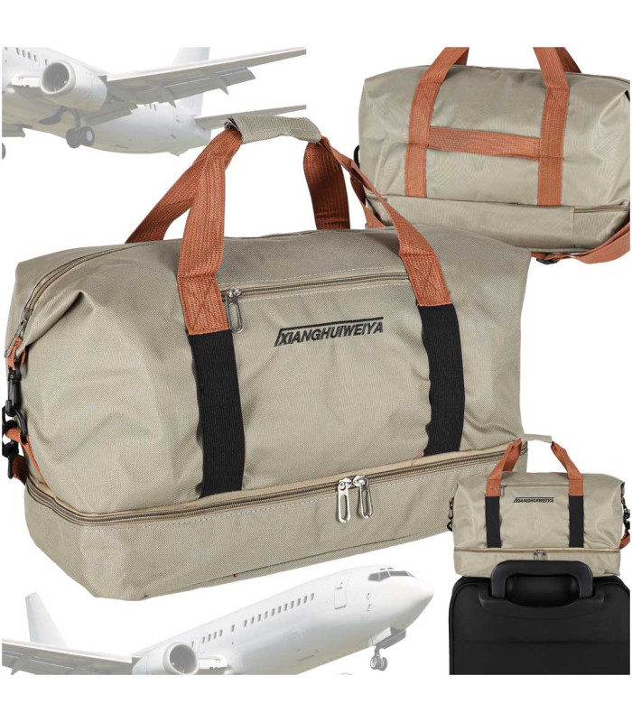 Ši universalioji kelioninė rankinė puikiai tiks tiek savaitgalio išvykoms, tiek ilgesnėms kelionėms. Rankinė turi papildomą apatinę užtraukiamą sekciją, kurią galima panaudoti batams, kosmetikai ar kitiems būtiniems priedams. Patogus dizainas leidžia optimaliai išdėlioti bagažo turinį be pernelyg didelio apkrovimo.