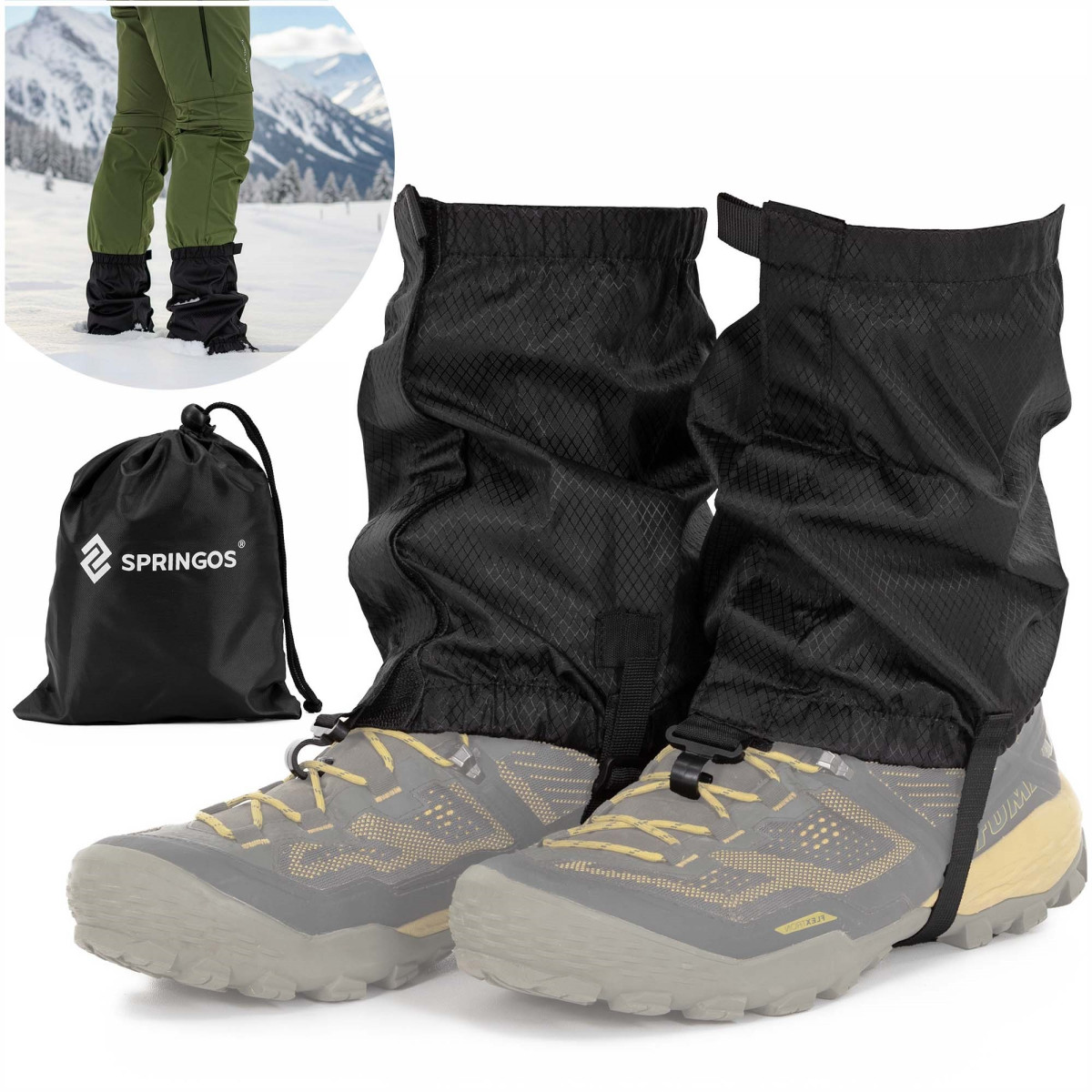 Trekingo antbačiai Springos padeda apsaugoti kelnes ir avalynę nuo purvo, drėgmės, sniego bei smulkių akmenukų. Jie puikiai tinka žygiams, pasivaikščiojimams gamtoje ir kitai veiklai lauke. Universalus dydis ir reguliuojamas tvirtinimas leidžia patogiai pritaikyti antbačius prie įvairios avalynės.