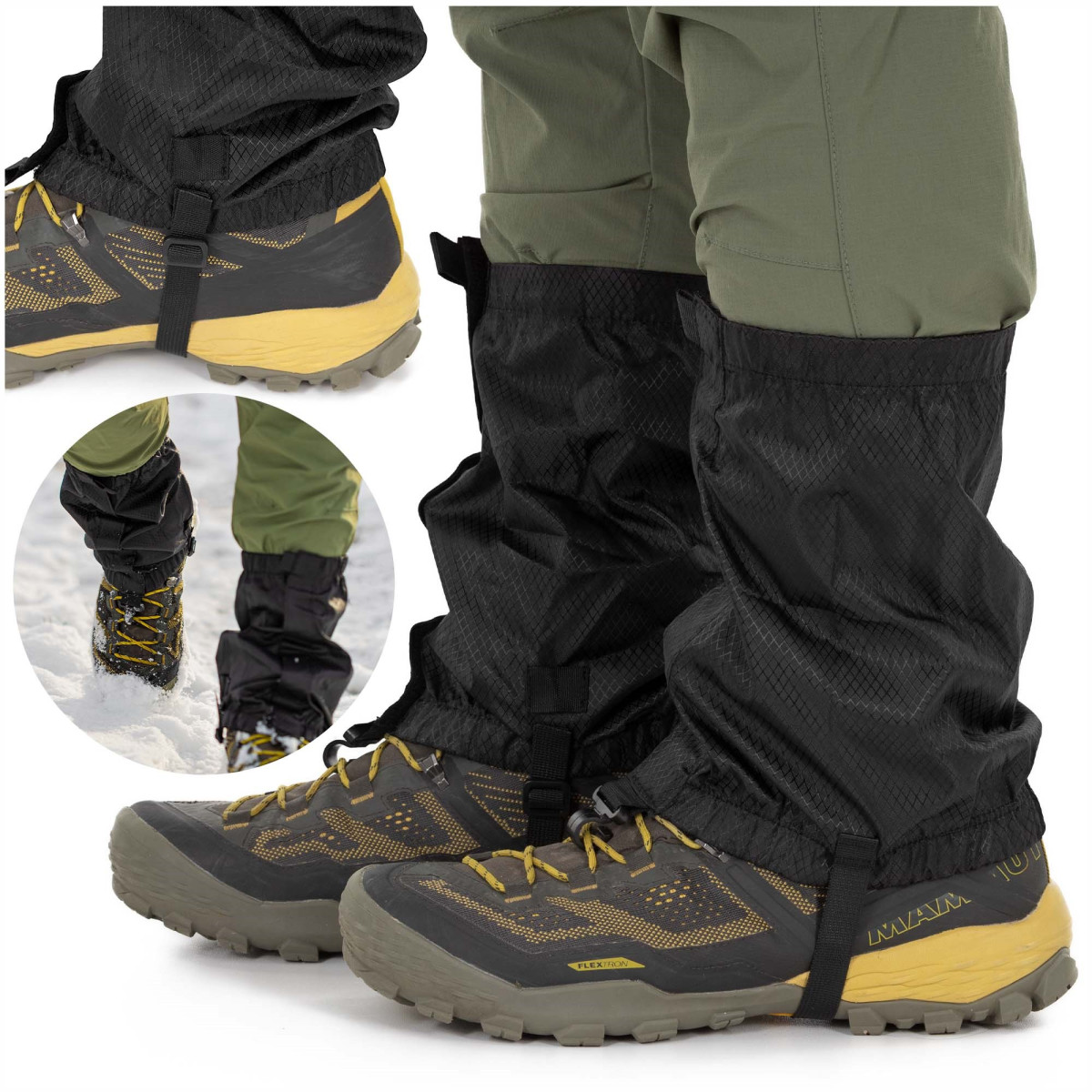 Nauda naudojant: šie trekingo antbačiai padeda patogiau judėti sudėtingesnėmis oro sąlygomis, saugo nuo nešvarumų ir pagerina komfortą žygių metu.