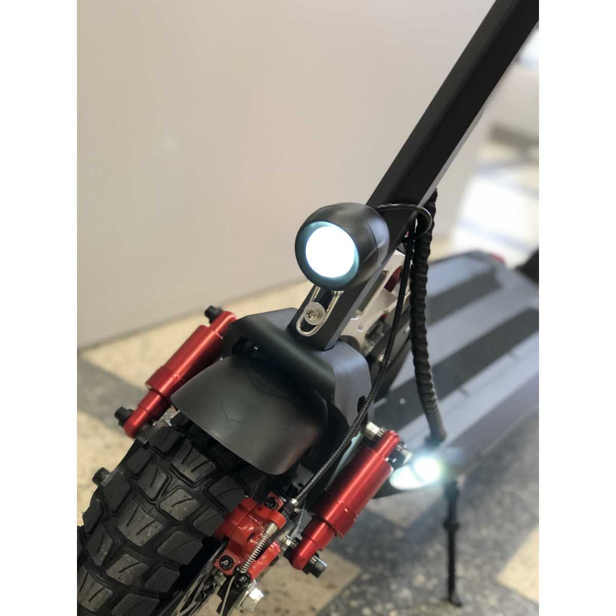- Priekiniai ir galiniai žibintai (abu veikia pagrindinės baterijos dėka) leis jums važinėtis sutemus;
