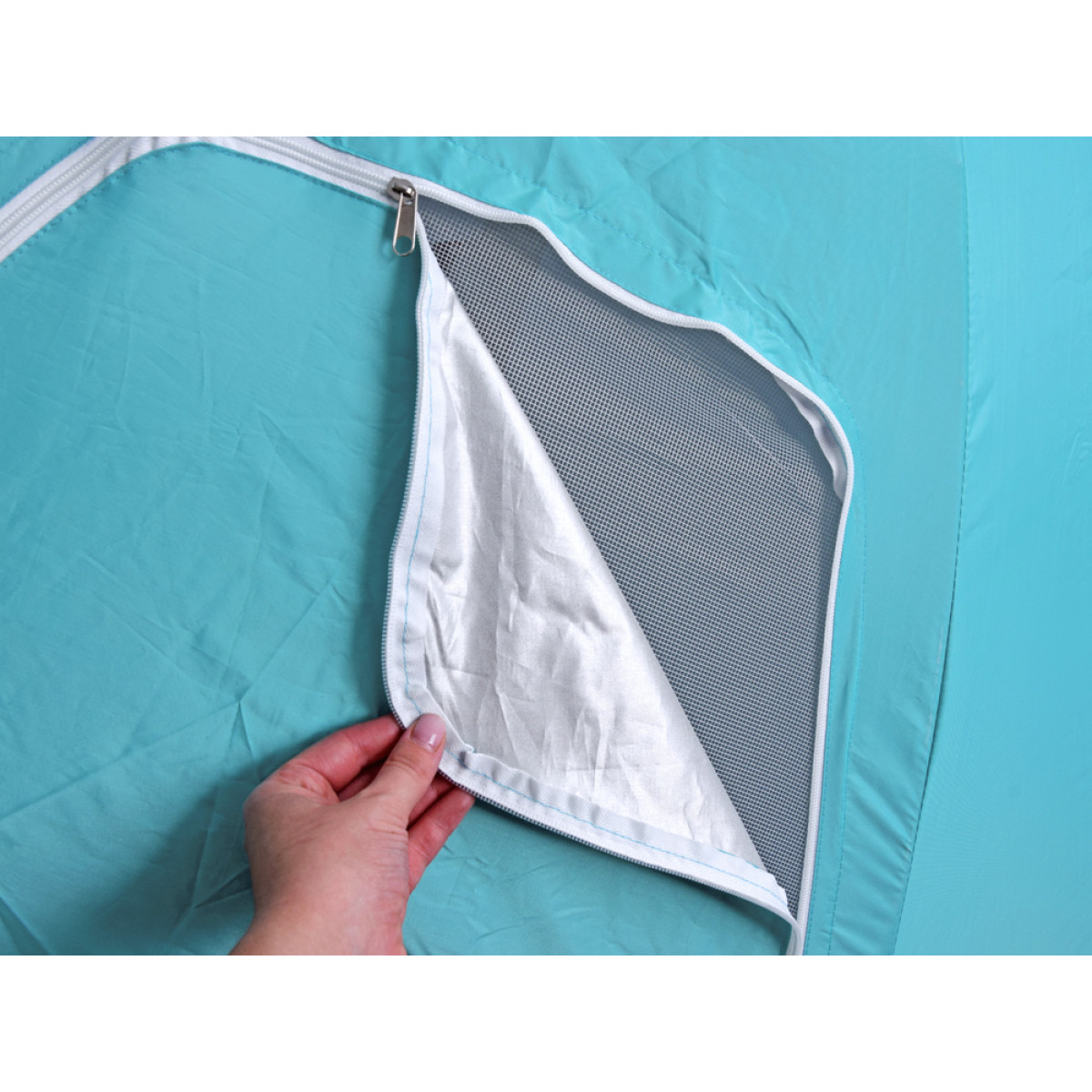 Skėtis Chalkidiki Para Sole UPF 50+ rūpinasi jūsų komfortu. Skėtis turi du langus su apsauginiu tinkleliu nuo uodų ir vėdinimo angas, kurios užtikrina puikią oro cirkuliaciją. Be to, vidinės kišenės leidžia laikyti gėrimus, maistą ir kitus smulkmenas.