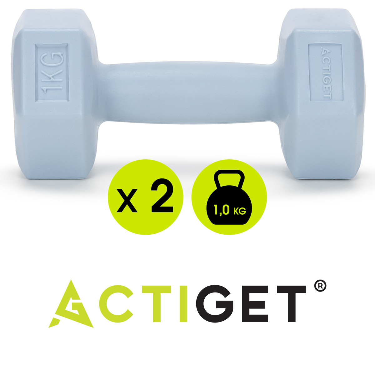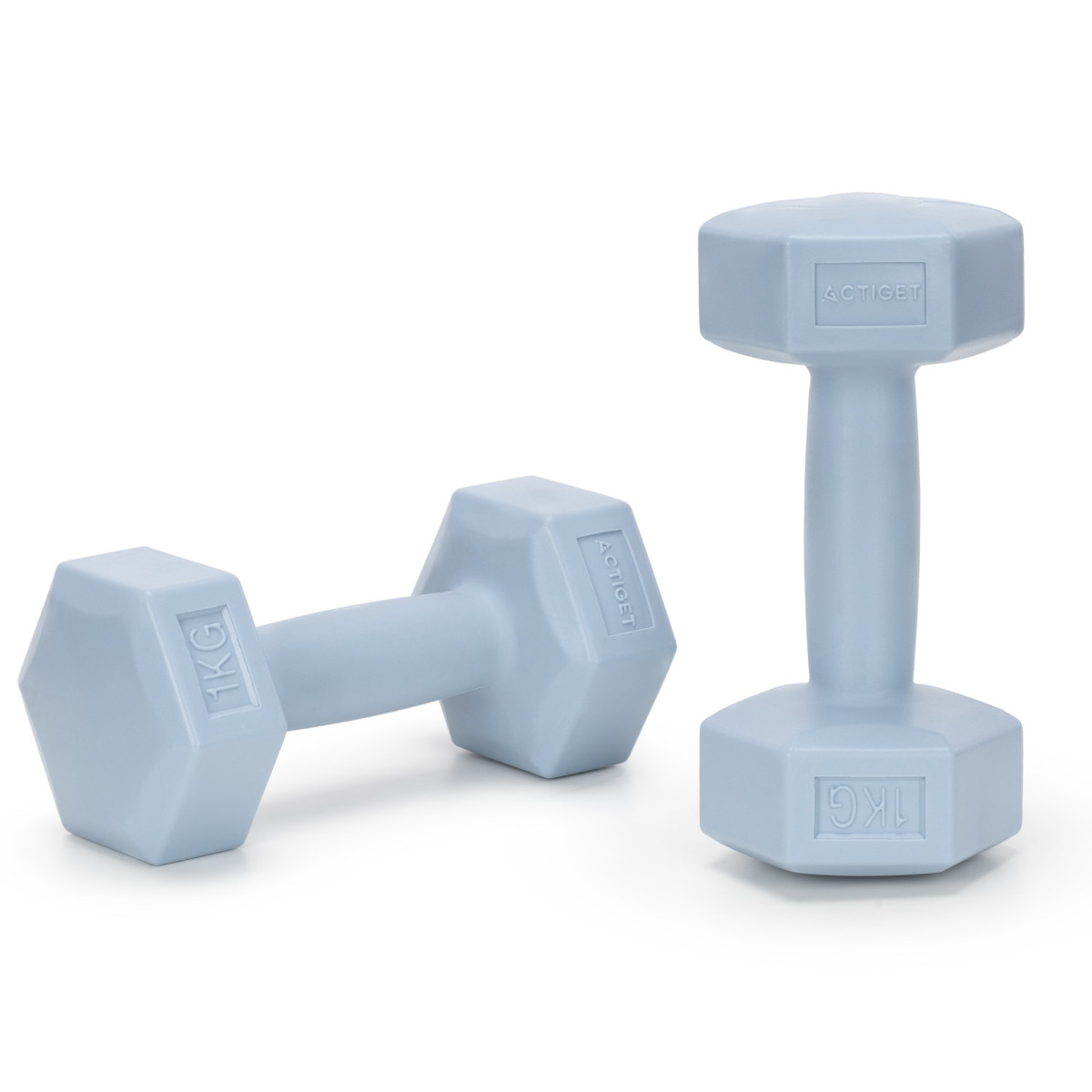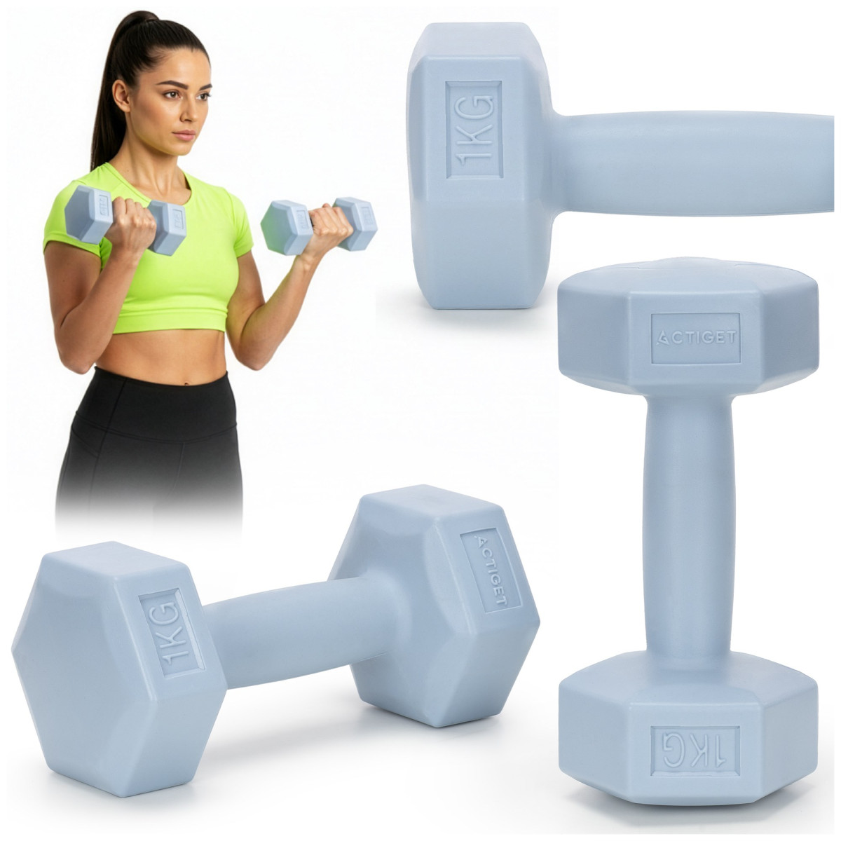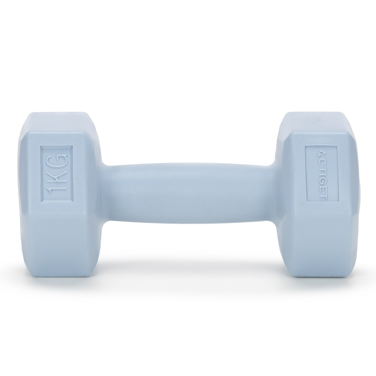 2x1kg šešiakampės hantelės fitneso pratimams, 2 vnt. komplektas, šviesiai mėlynos