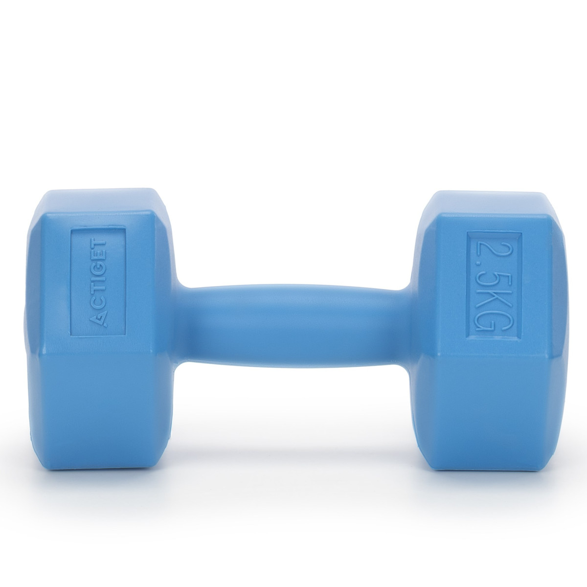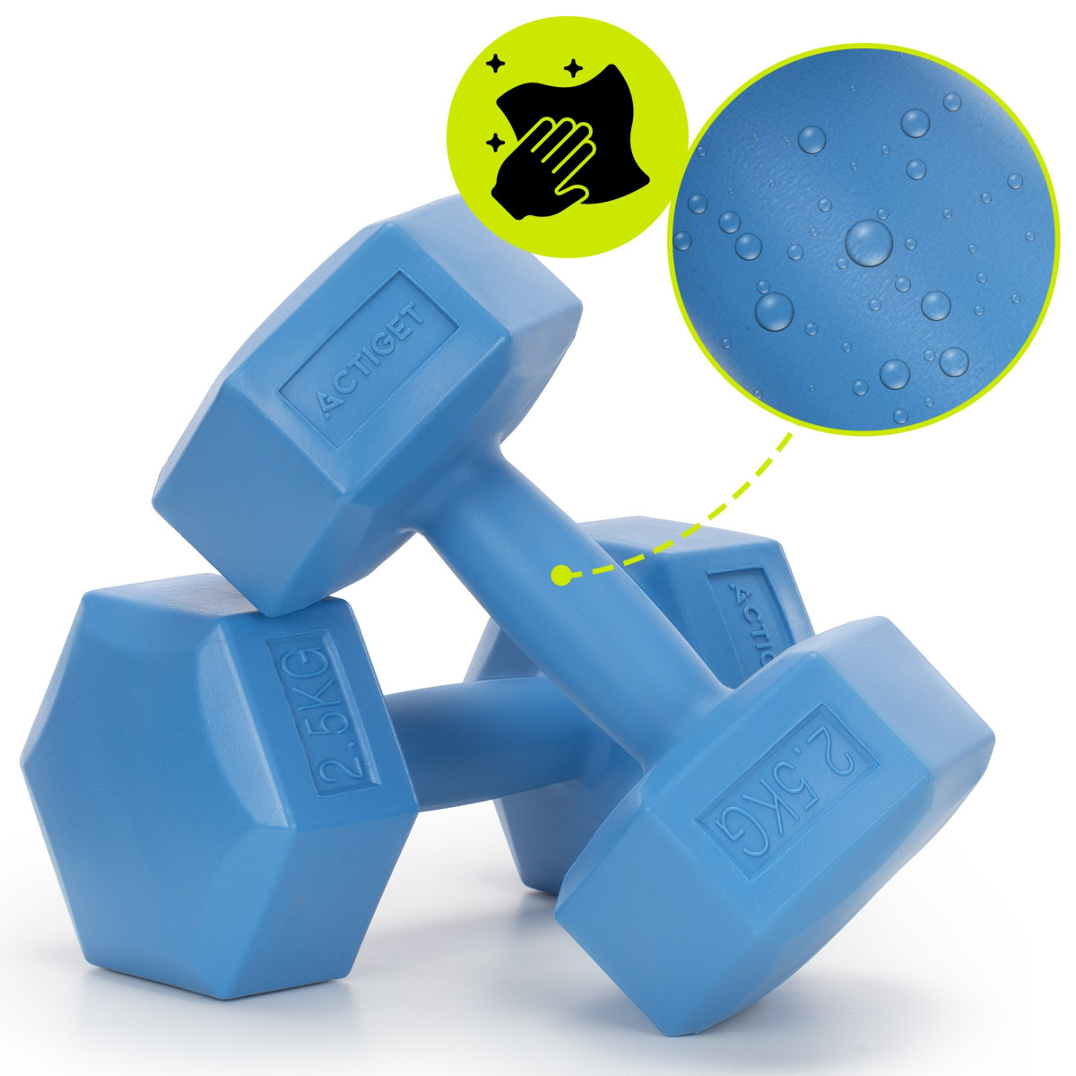 2 x 2,5 kg šešiakampės hantelės fitneso treniruotėms, 2 vnt. komplektas, mėlynos