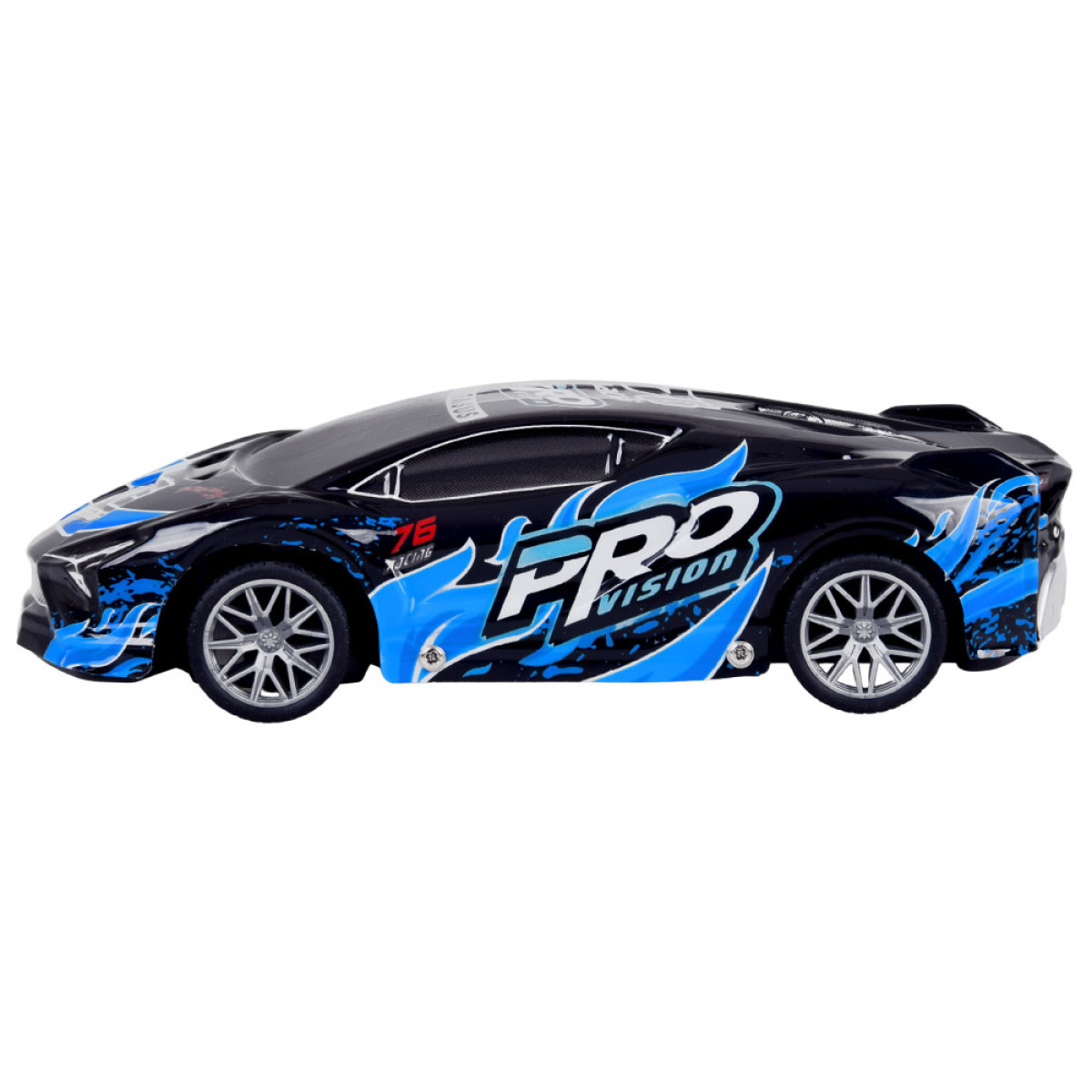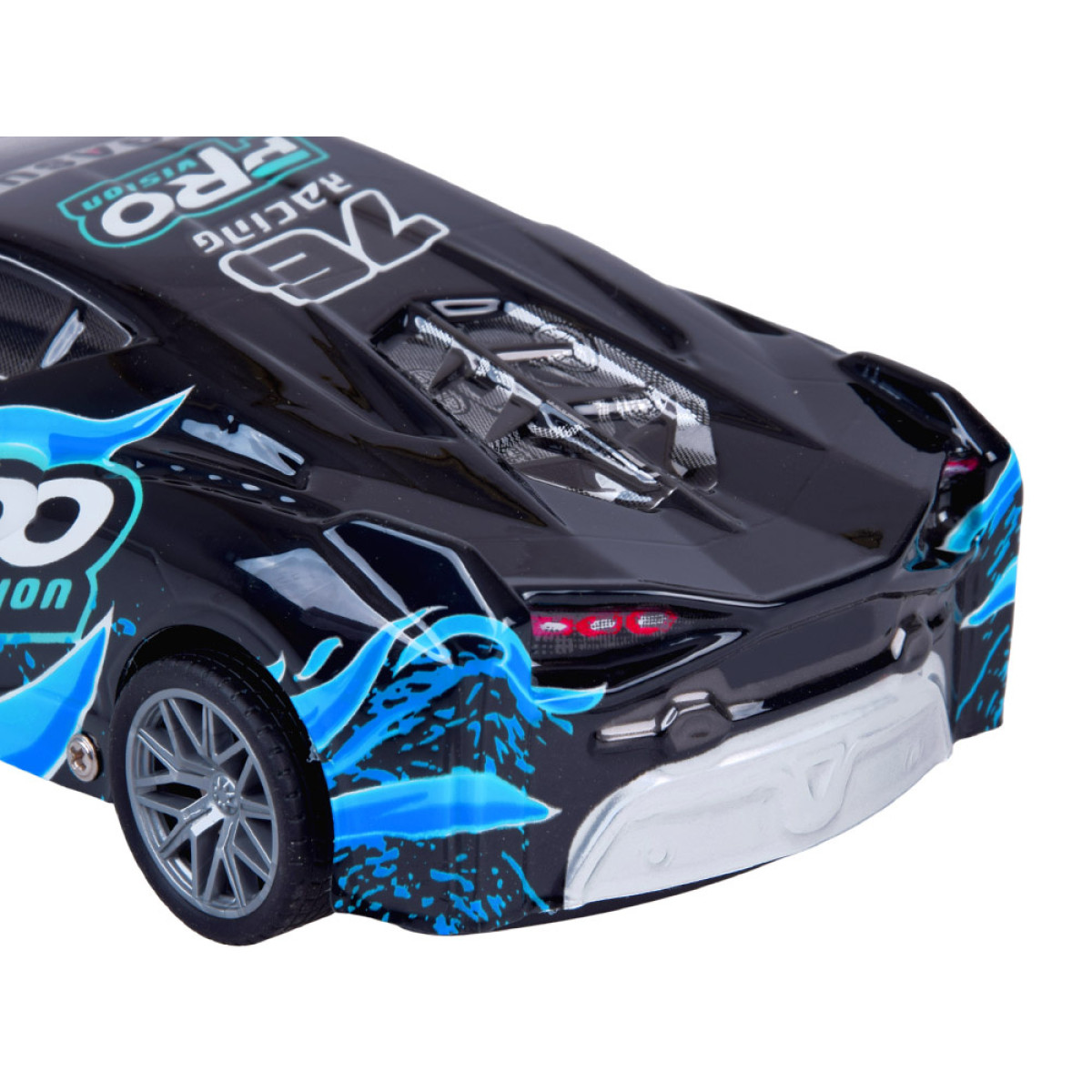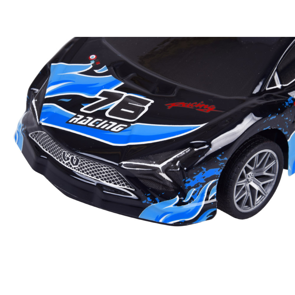 sportinis nuotoliniu būdu valdomas automobilis yra puikus pasirinkimas vaikams ir visiems greitų automobilių mėgėjams. Šis modelis turi lengvą, plastikinį ir pažeidimams atsparų juodos spalvos korpusą, papuoštą spalvingais užrašais, kurie suteikia jam išskirtinį sportinį stilių. Važiuojant kėbulas šviečia ir mirksi, todėl automobilis atrodo ypač įspūdingai prieblandoje.