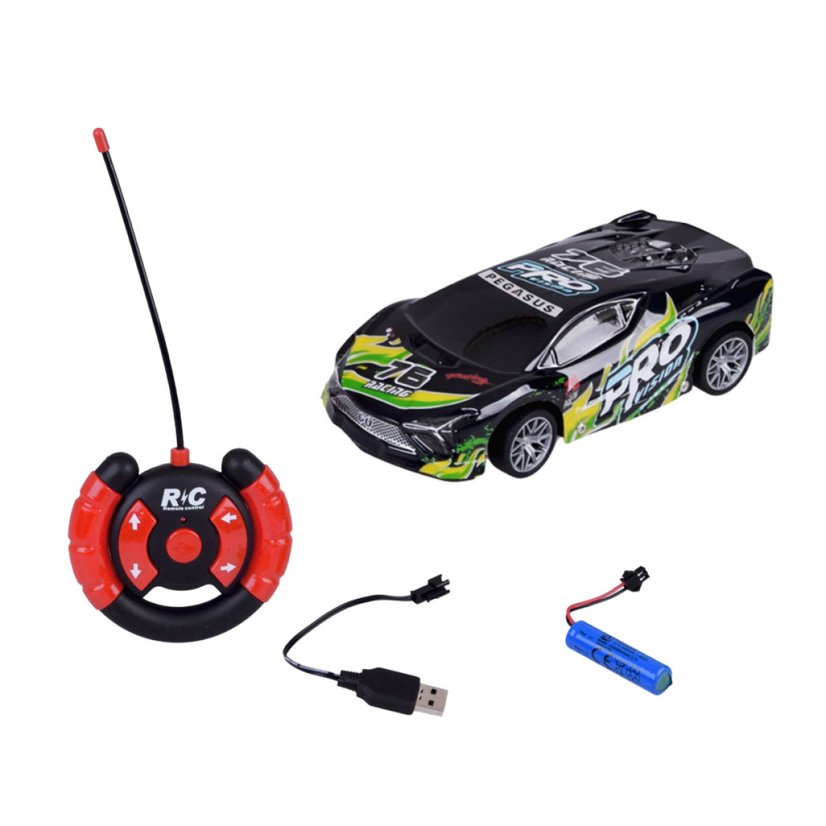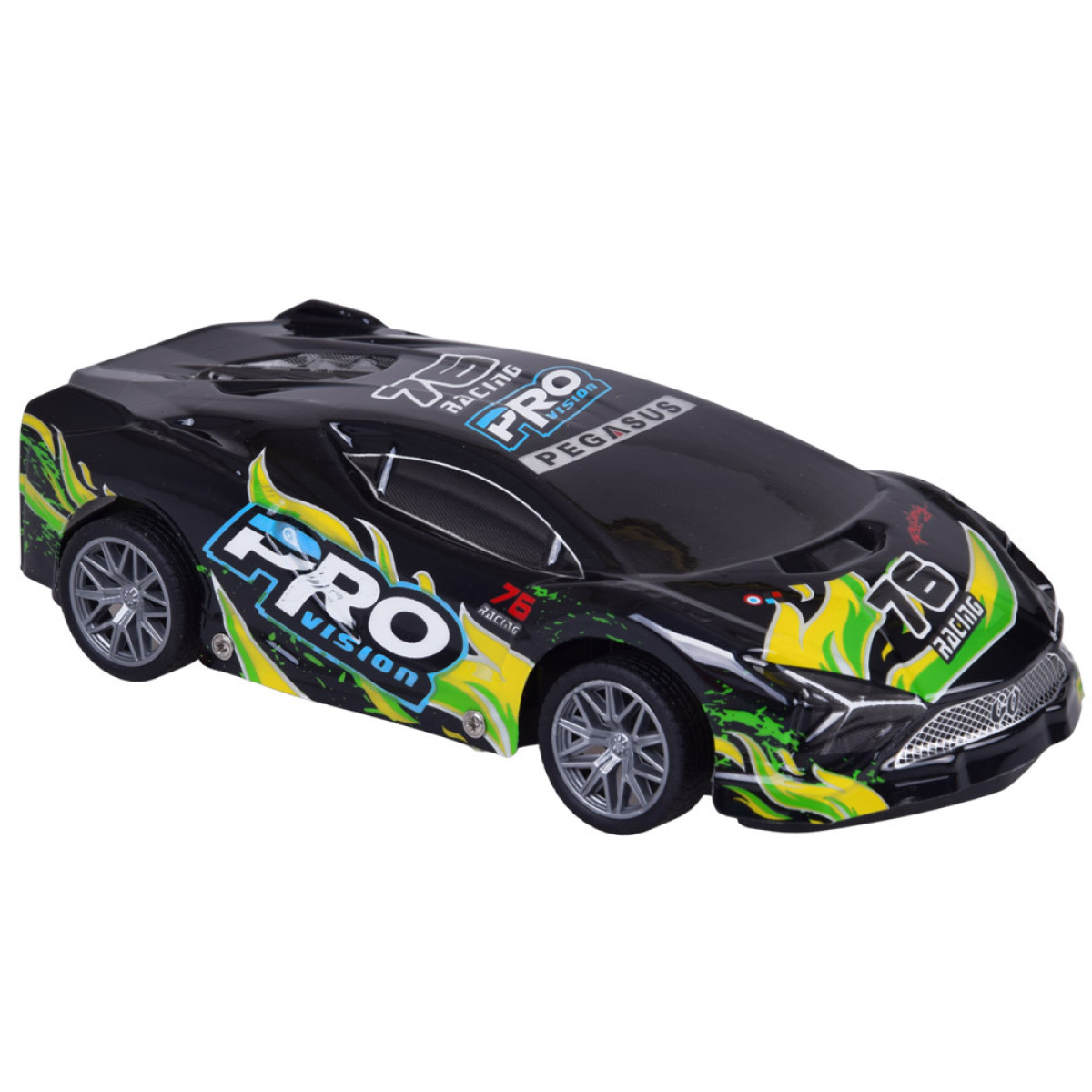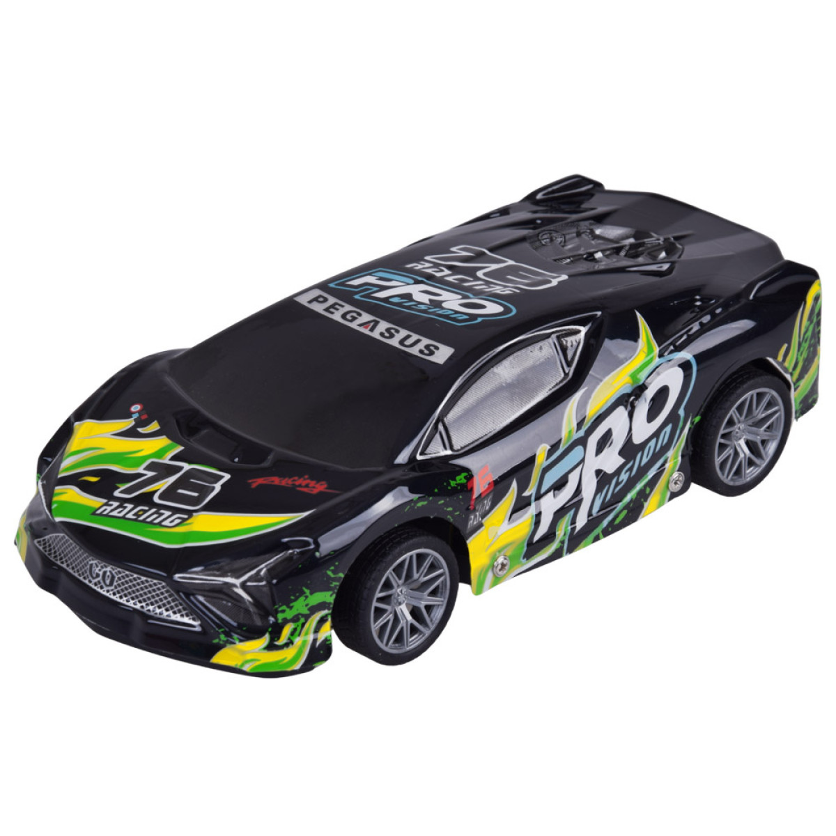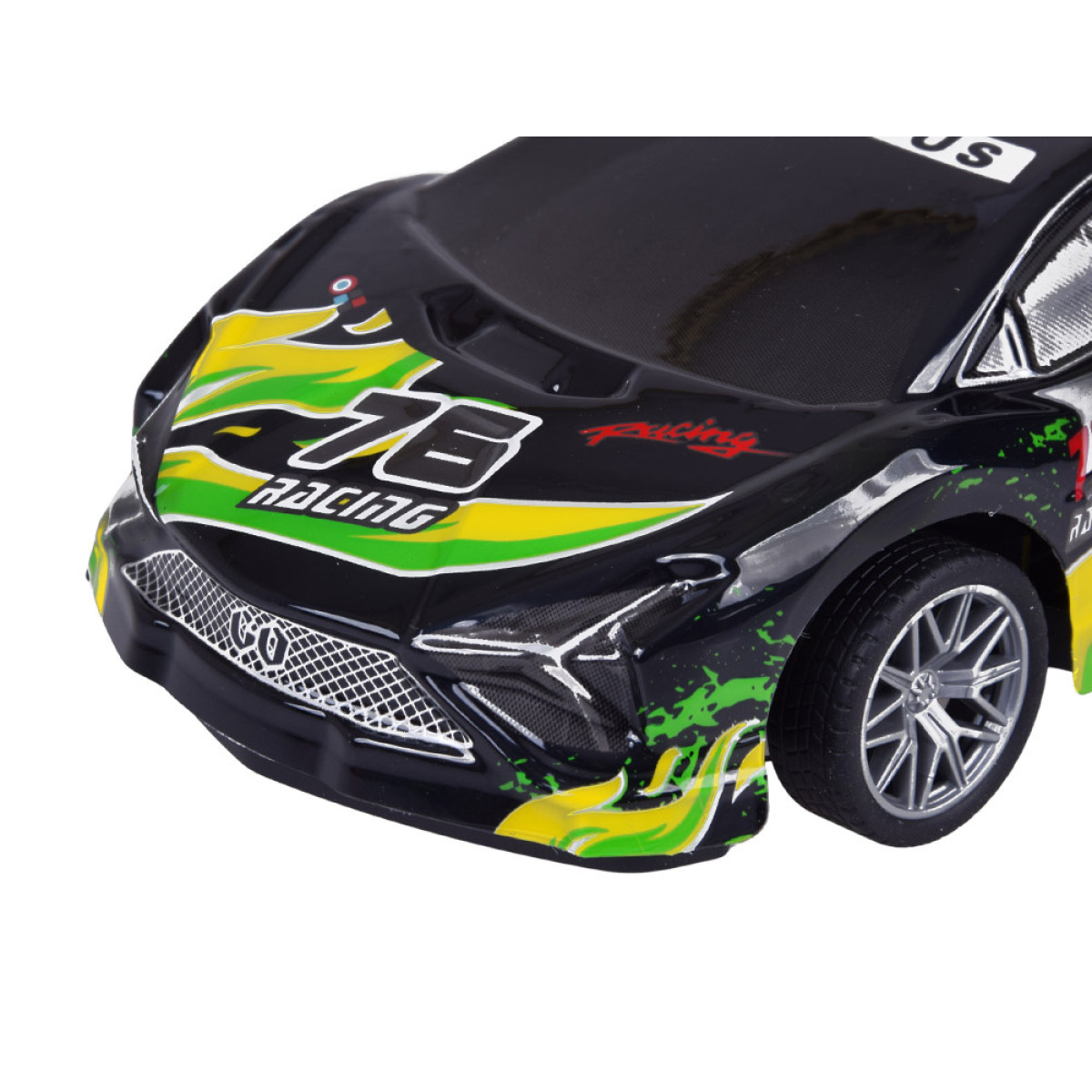 sportinis nuotoliniu būdu valdomas automobilis yra puikus pasirinkimas vaikams ir visiems greitų automobilių mėgėjams. Šis modelis turi lengvą, plastikinį ir pažeidimams atsparų juodos spalvos kėbulą su spalvingais užrašais, kurie suteikia jam išskirtinį sportinį stilių. Važiuojant kėbulas šviečia ir mirksi, todėl automobilis atrodo itin patraukliai, ypač prieblandoje.