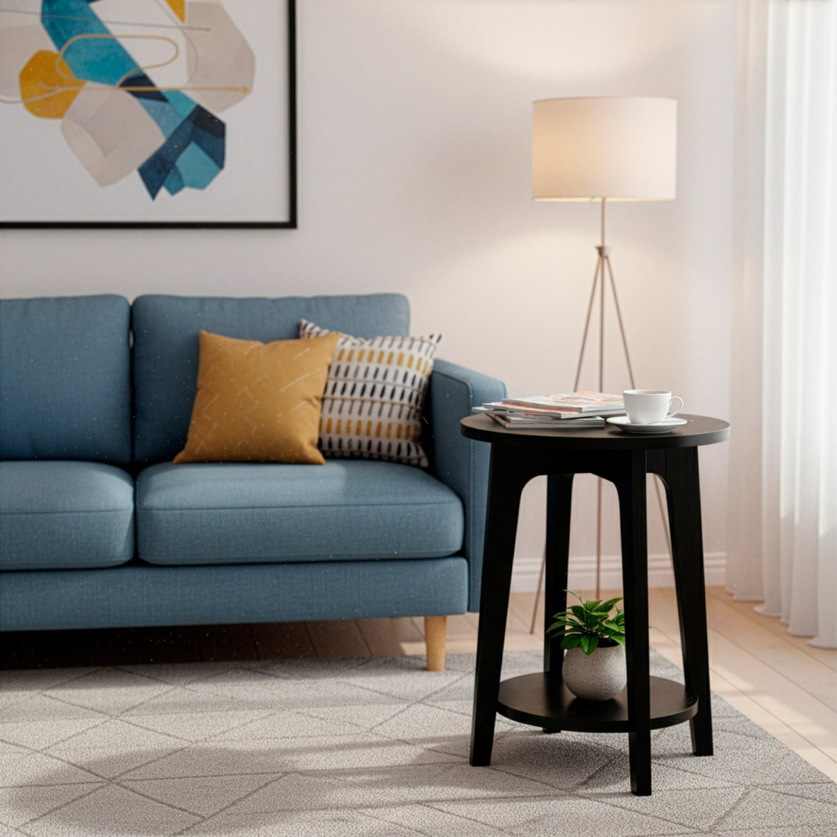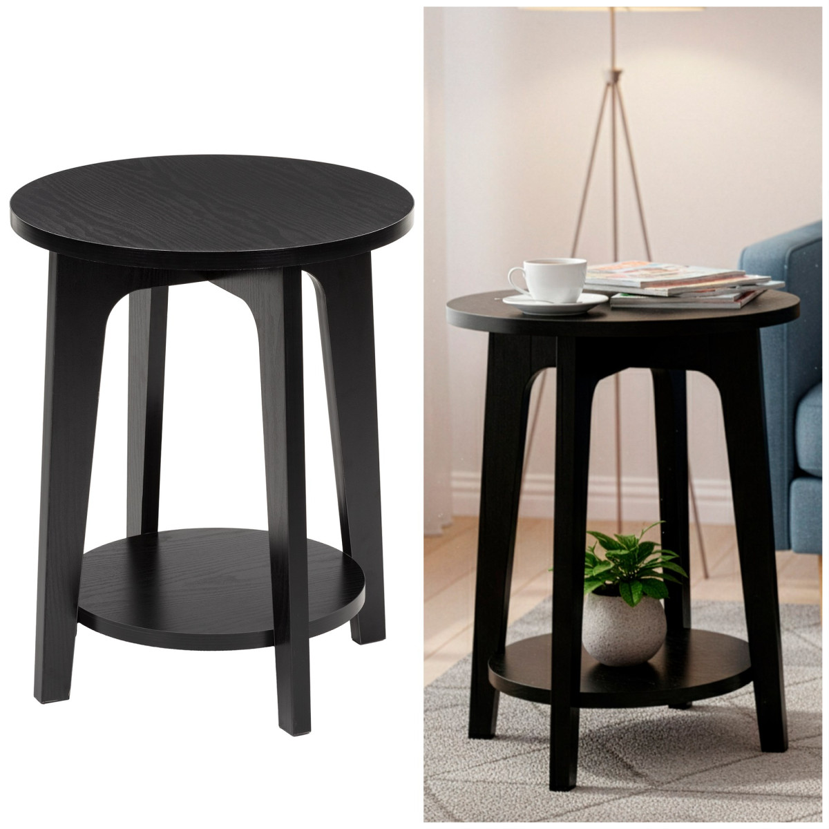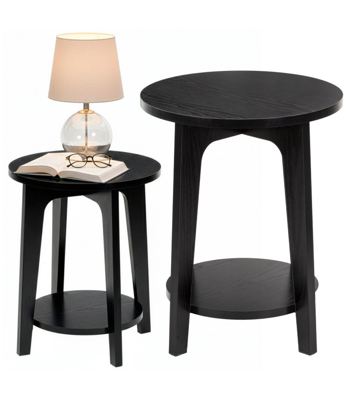 Prekės ženklas: Springos® Medžiaga: medis, MDF Spalva: juoda Maksimali apkrova: 40 kg Papildoma lentyna po stalviršiu Matmenys: Bendras aukštis: 50 cm Bendras plotis: 40 cm Bendras gylis: 40 cm Stalviršio skersmuo: 40 cm Apatinės lentynos skersmuo: 31 cm Lentynos storis: 2 cm Atstumas nuo žemės iki lentynos: 8.5 cm Atstumas tarp lentynos ir stalviršio: 38 cm Atstumas tarp kojų: 33 cm Atstumas tarp gretimų kojų: 22 cm Kojos plotis prie pagrindo: 3 cm Kojos plotis viršuje: 5 cm Kojos storis: 2 cm Papildoma informacija: Produktas skirtas savarankiškam surinkimui