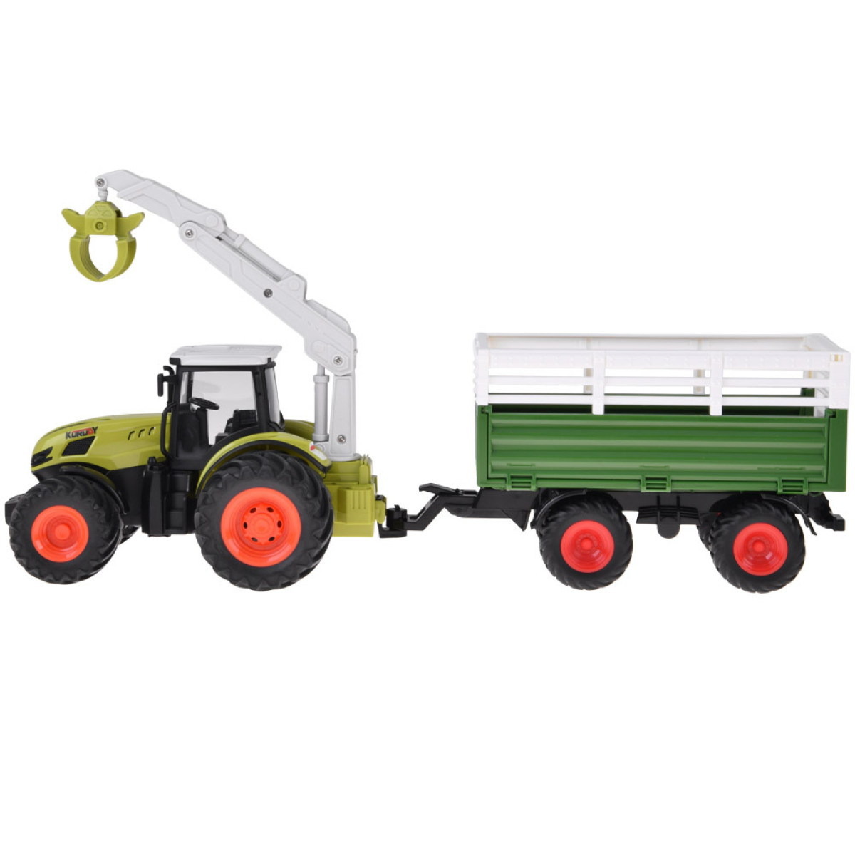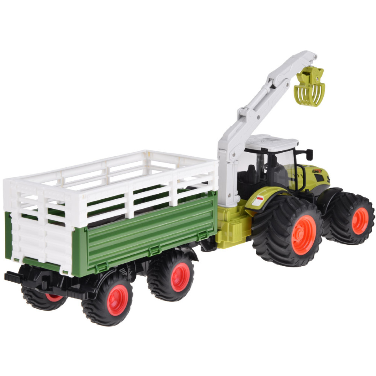 Šis nuotoliniu būdu valdomas traktorius su medžių griebtuvu yra būtinas kiekvienam gerai įrengtam ūkiui! Traktorius puikiai tinka ūkinėms žaidynėms, o talpi priekaba naudinga pervežant medžių rąstus arba gyvūnų figurėles. Rinkinys užtikrins daug valandų įdomios ir vaizduotę lavinančios veiklos!