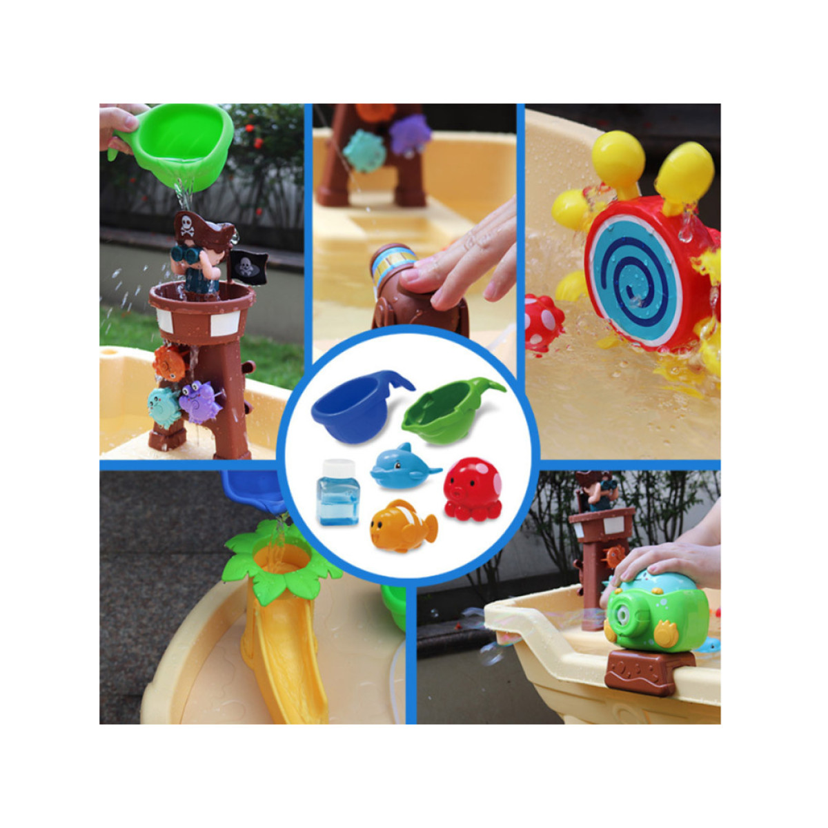 Vandens laivas su daugybe aksesuarų - tai magiška vieta kūrybingam vaikų žaidimui. Nuostabus vandens stalas vaikams yra puikus žaidimo ir mokymosi derinys lauke. Šis išskirtinis rinkinys garantuoja vaikams nepamirštamas linksmybes ir tyrinėjimą.