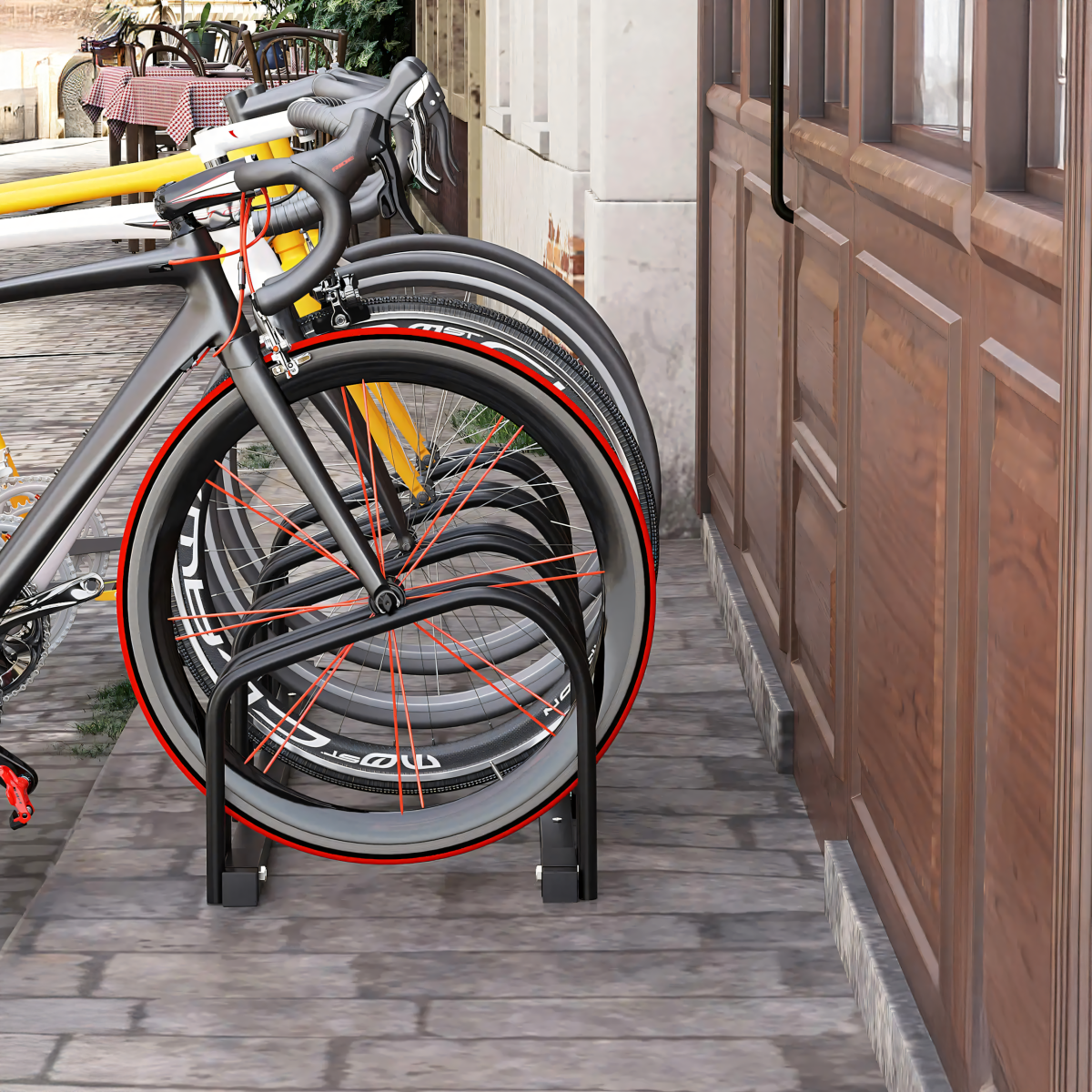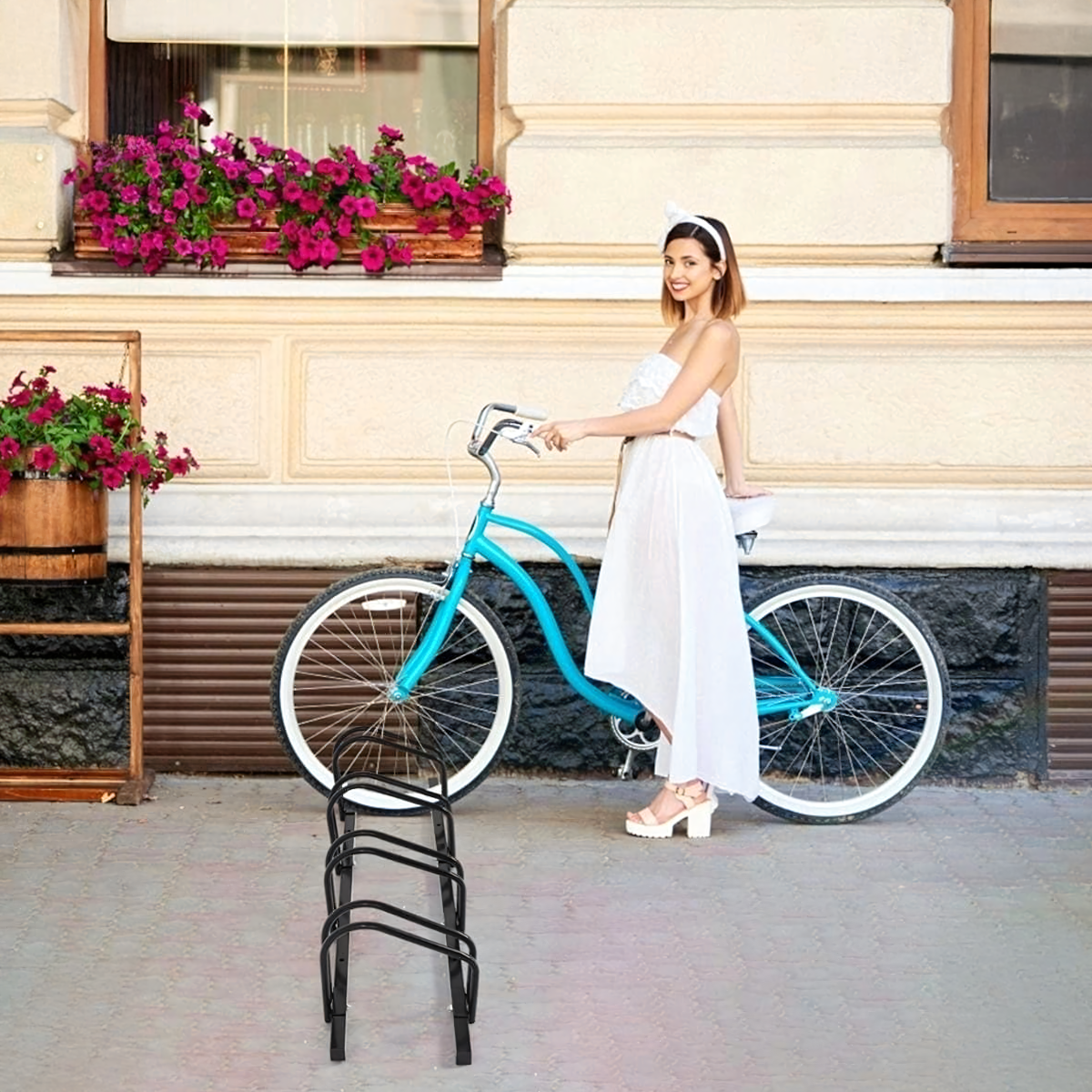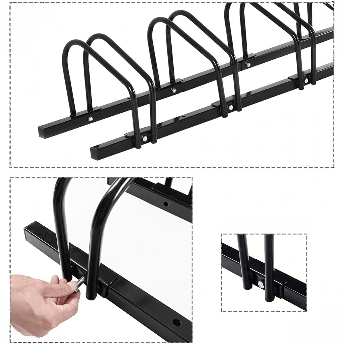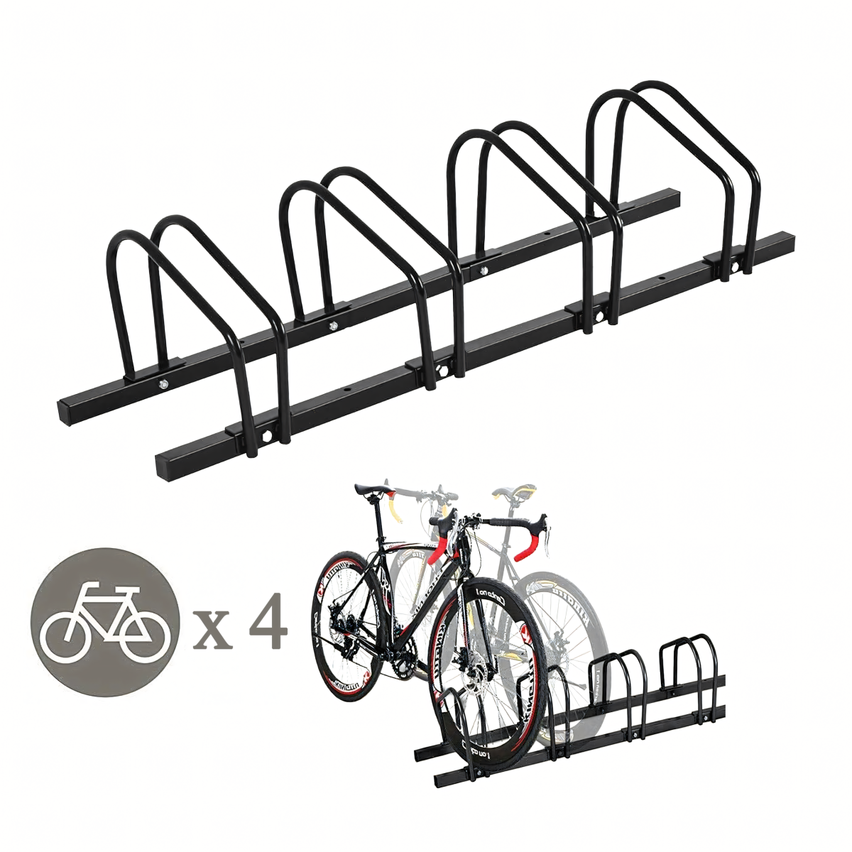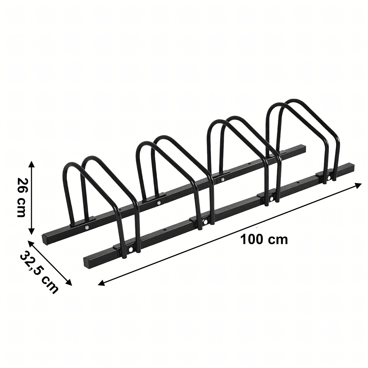 Šis stovas yra puikus pasirinkimas tiems, kurie ieško patikimos ir tvirtos vietos savo dviračiams laikyti. Pagamintas iš juodos, solidžios plieninės konstrukcijos, šis stovas užtikrins ilgalaikį naudojimą ir patikimumą. Jo matmenys 100x32,5x26 cm leidžia patogiai laikyti net keturis dviračius vienu metu.