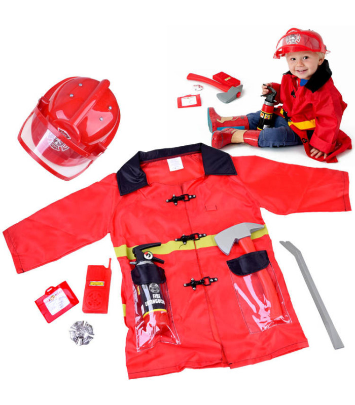 Vaiko gaisrininko kostiumas su šalmu ir priedais