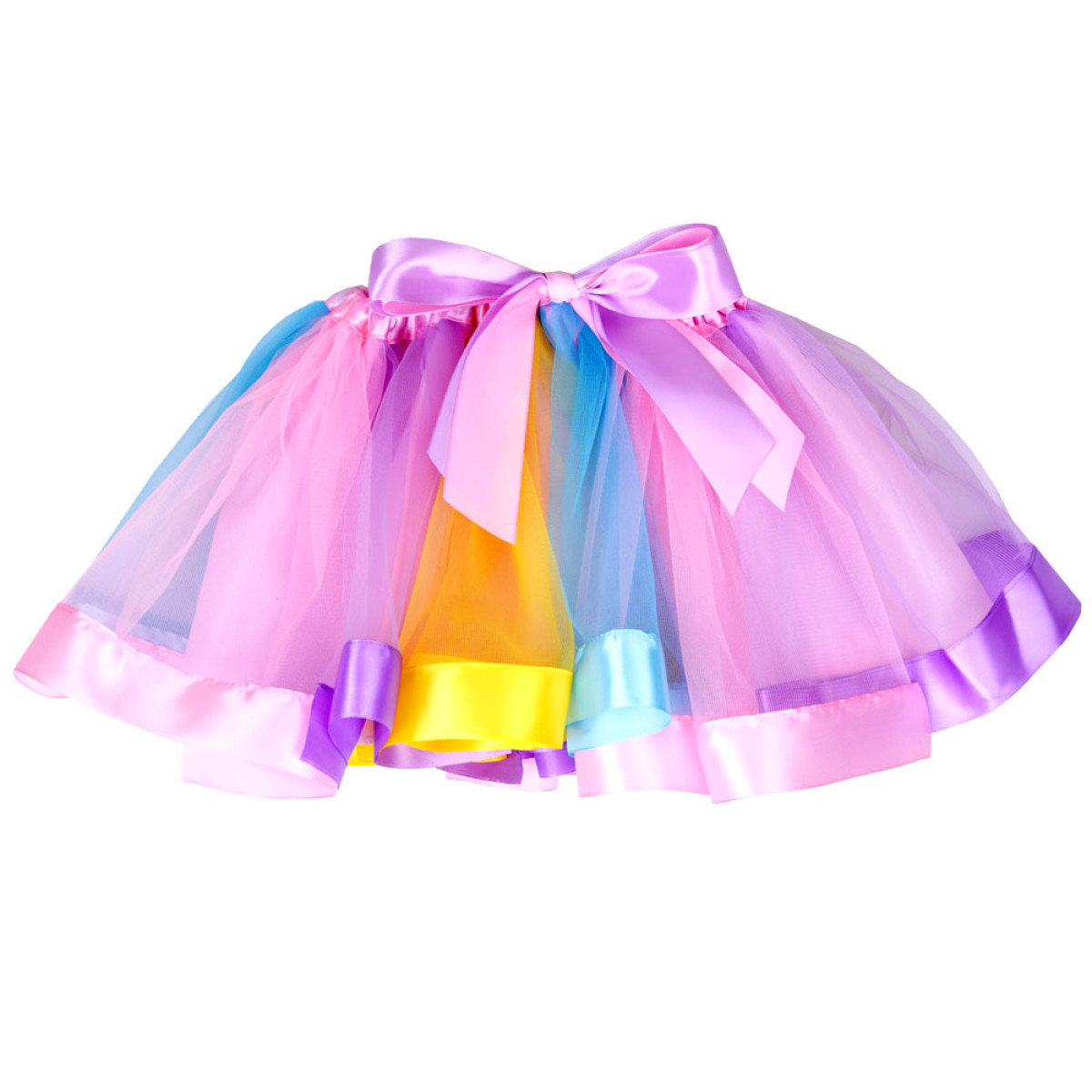 - Vaivorykštinė sijonėlė su satino kaspinu