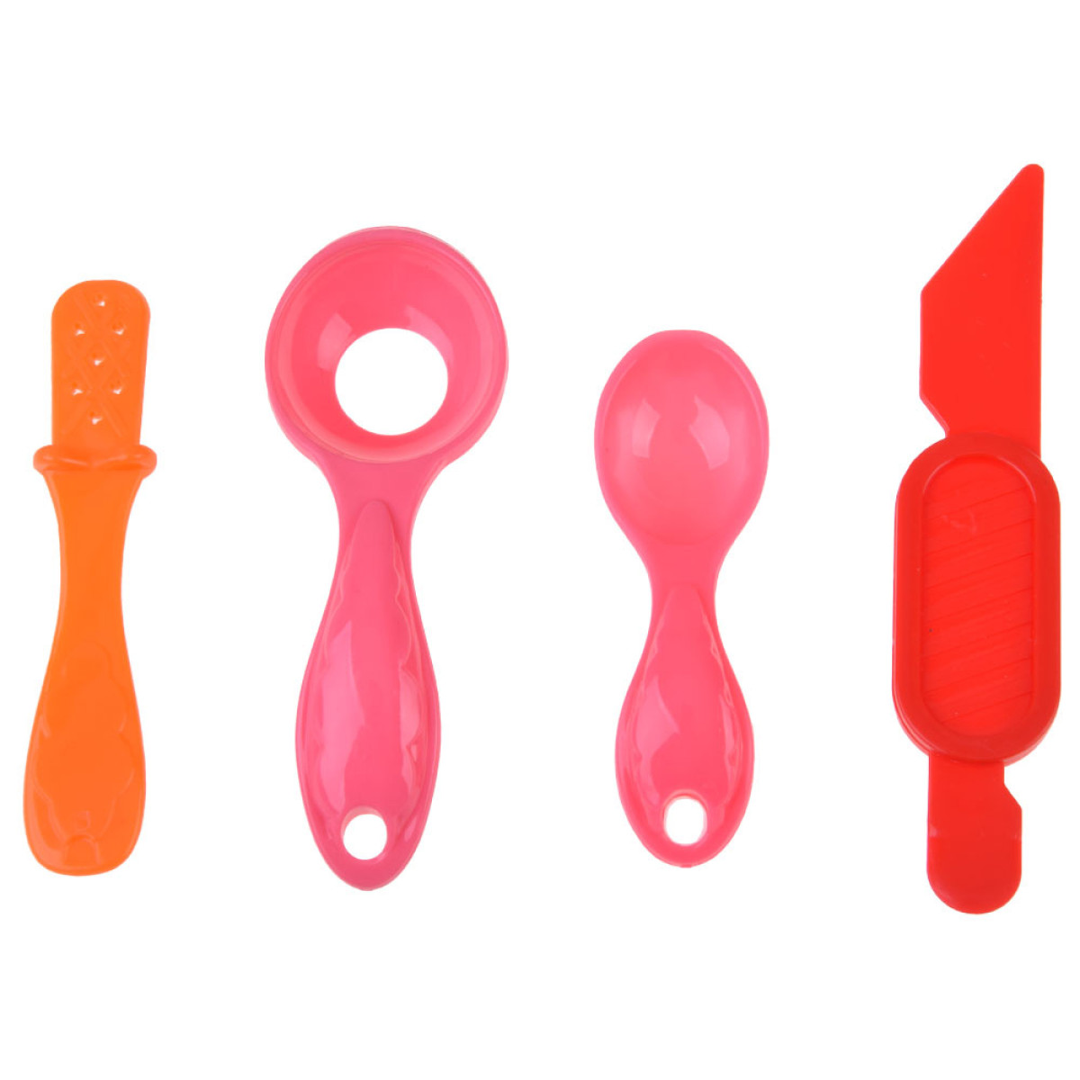 - Įrankiai ledams gaminti: spaustuvas, šaukštelis, ledų rutuliukas, peiliukas, ledų pagaliukas, papildomas pagaliukas.