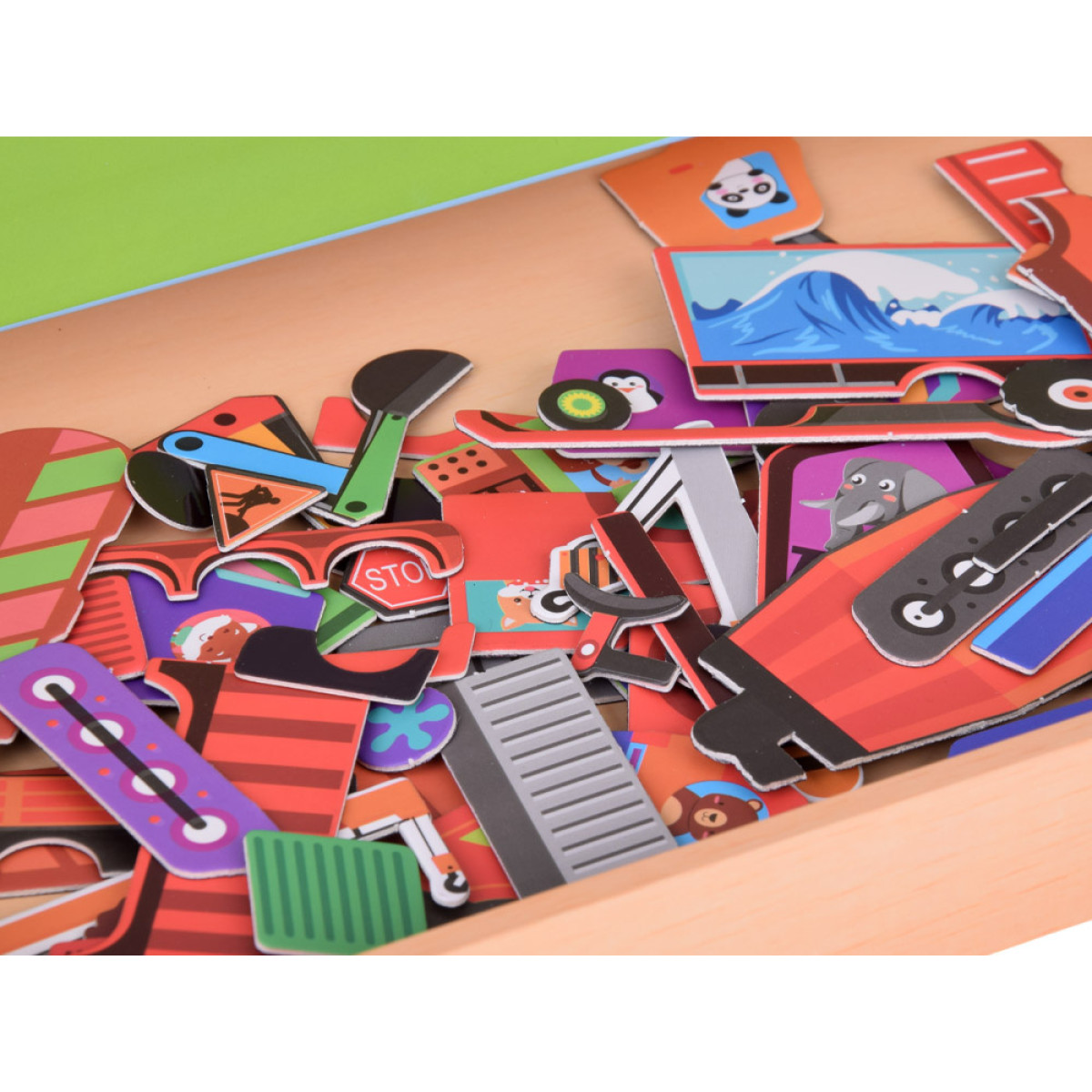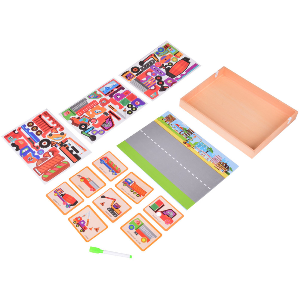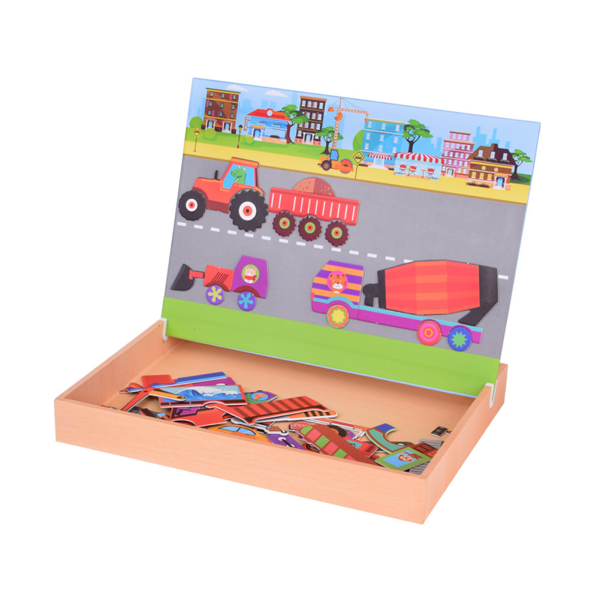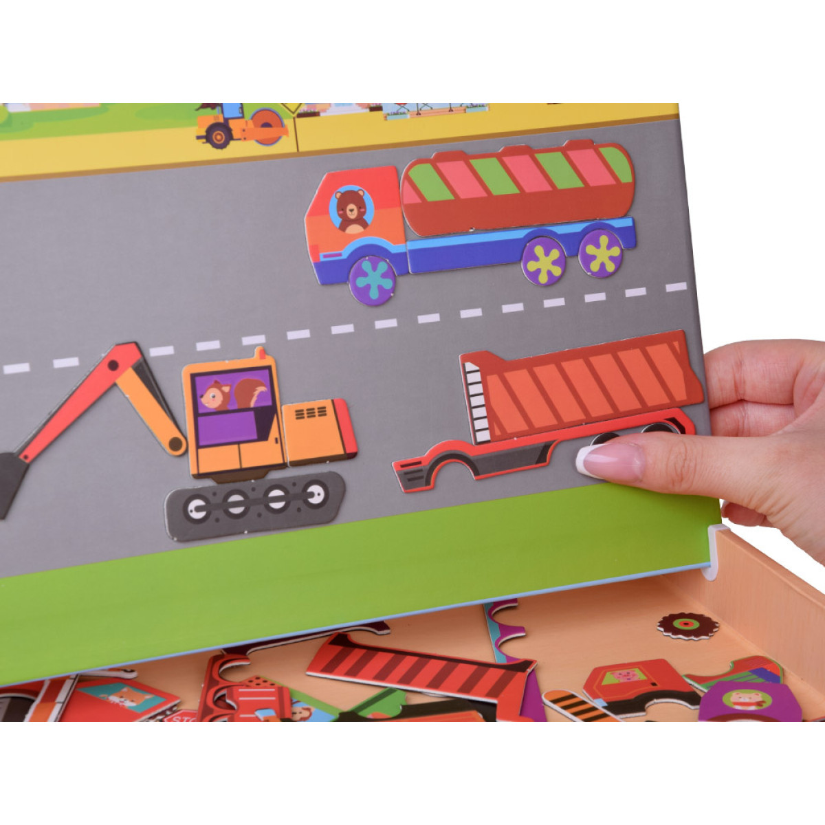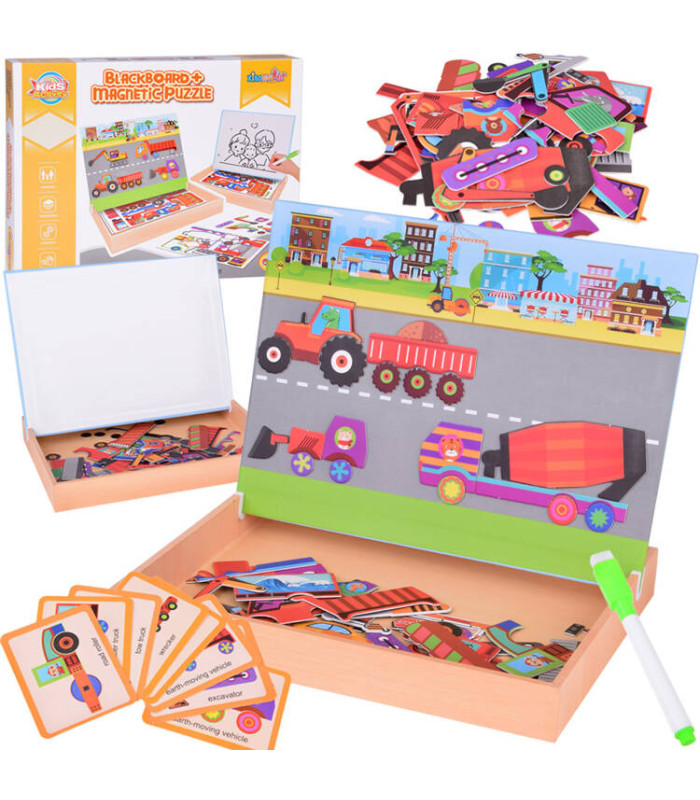 Magnetinė Lenta 2in1 su Magnetinėmis Dėlionėmis Statybos Transporto Priemonės