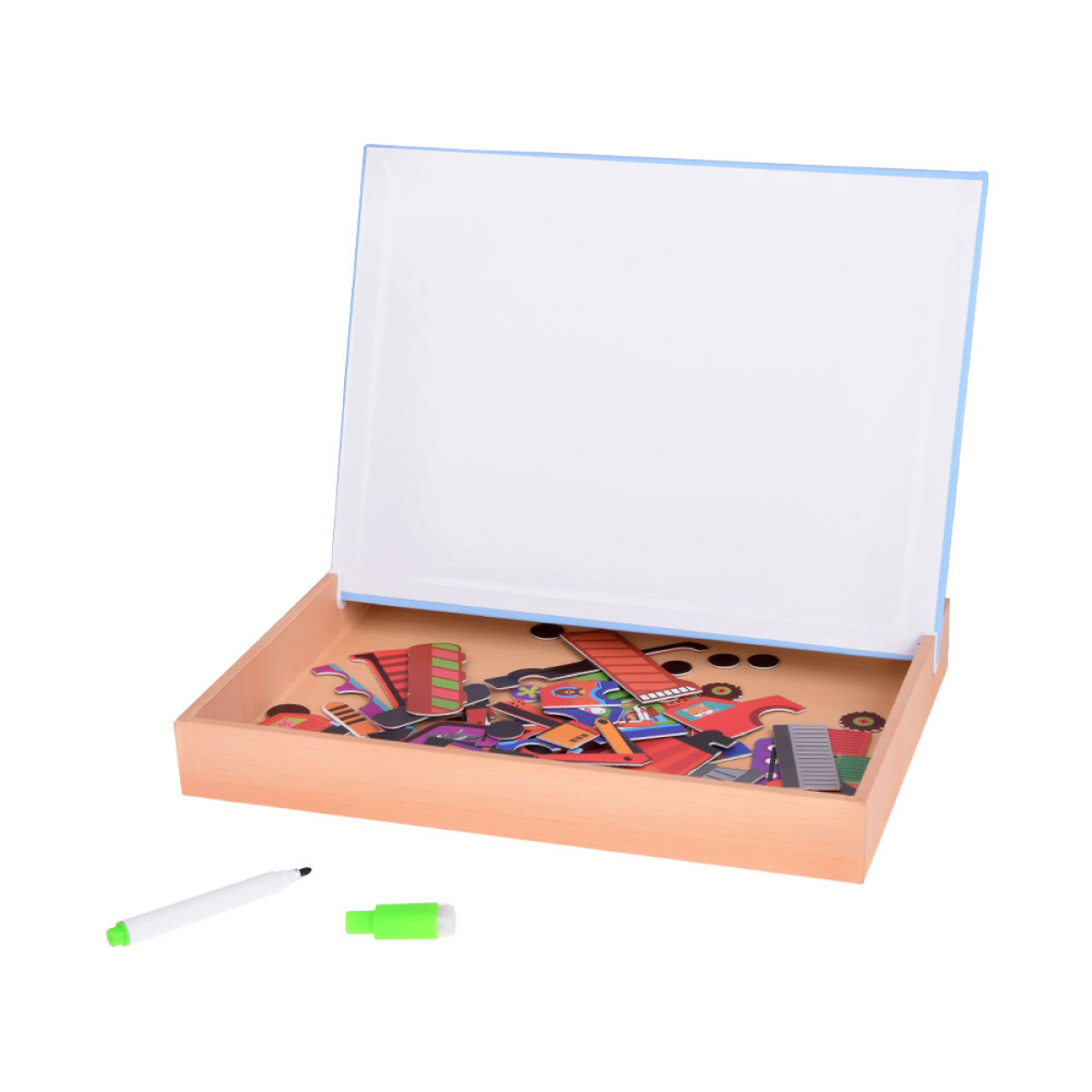 Magnetinė Lenta 2in1 – Magnetinės Dėlionės Statybinės Mašinos ir Piešimas Rašikliu