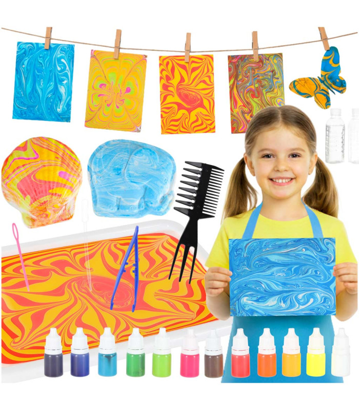 Tapyba ebru dažais yra neįprasta patirtis, apjungianti ramybę, preciziją ir spontaniškumą. Užtenka kelių spalvų lašų, kad vandens paviršiuje atsirastų tikras spalvų šokis. Kiekvienas gestas, kiekvienas šepetėlio prisilietimas - tai nauja išraiškos forma ir emocijų pilna ebru estetika. Mūsų rinkinyje rasite viską, ko reikia pradėti ebru kūrimo procesą - nuo saugių pigmentų iki įrankių, kurie įves jūsų vaiką į spalvos ir meninės laisvės pasaulį.