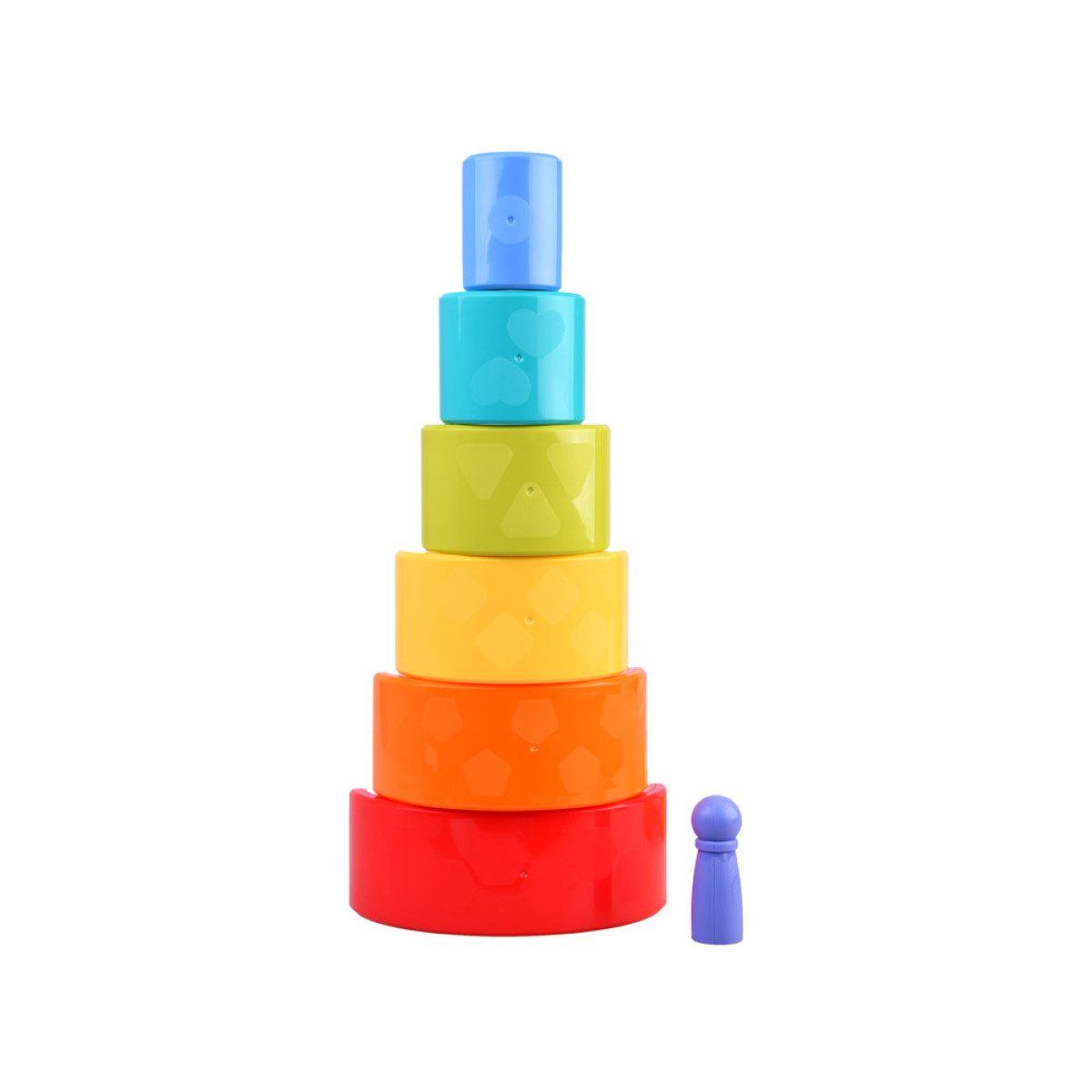 • Ant gyvūno nugaros yra violetinė juostelė ir šeši puslankiai skirtingų spalvų ir dydžių. Vaikas gali pažinti naujas spalvas ir sudėti piramidę nuo mažiausio arba didžiausio elemento.