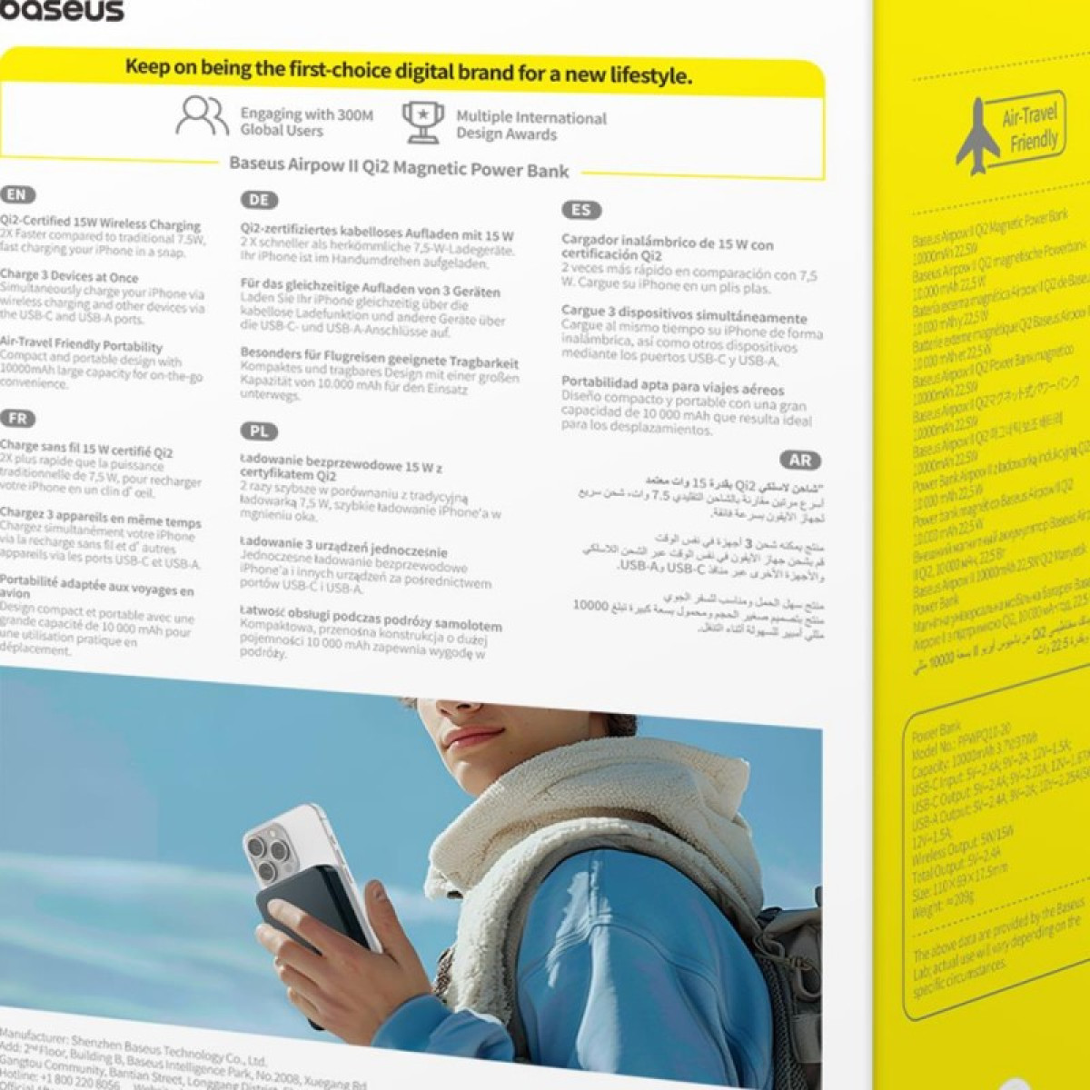 -quot;Baseus Airpow Qi2-quot; magnetinis maitinimo bankas 10000 mAh 22,5 W su kabeliu kosminės juodos spalvos