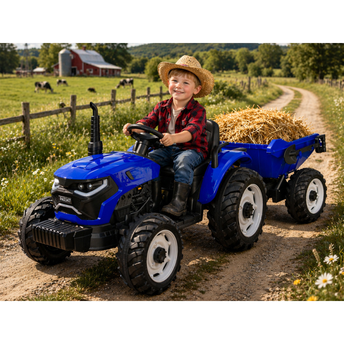 Akumuliatorinis traktorius su priekaba ir pakeliamu kėbulu – puikus pasirinkimas vaikui, kuriam patinka aktyvūs žaidimai ir ūkininko vaidmuo. Šis vaikiškas traktorius leidžia ne tik važiuoti, bet ir vežti įvairius daiktus, pavyzdžiui, smėlį, lapus ar žaislus. Priekaba su judančiu kėbulu suteikia dar daugiau žaidimo galimybių ir padeda kurti įdomius kasdienius nuotykius.