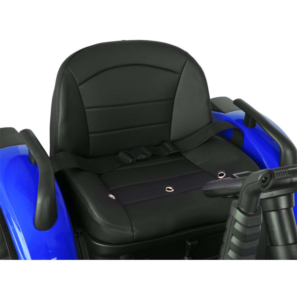 Traktorius pagamintas iš tvirto plastiko, o sėdynė padengta ekologiška oda, todėl važiuoti patogu. Juosmens saugos diržas padeda stabiliai sėdėti važiuojant. Dideli plastikiniai ratai ir tinkama prošvaisa leidžia važiuoti įvairiais paviršiais, pavyzdžiui, žole ar kietu taku.