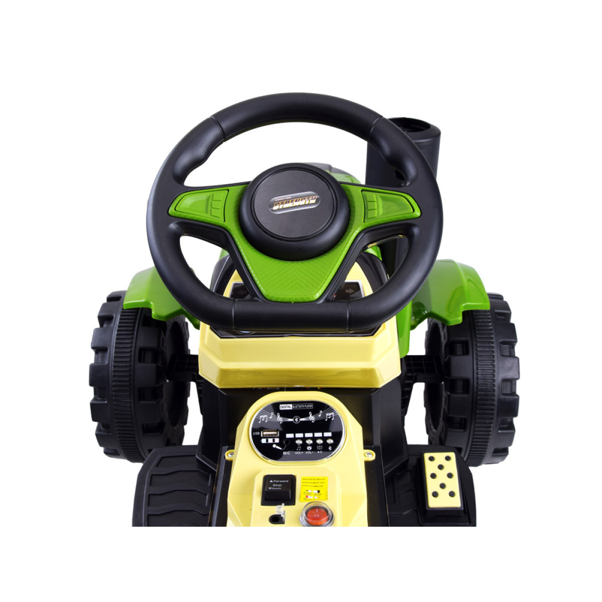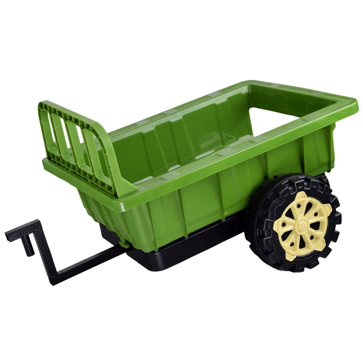 vaikiškas elektrinis traktorius su priekaba suteiks daug džiaugsmo kiekvienam mažajam ūkininkui. Tai puikus pasirinkimas smagiems žaidimams kieme, sode ar žaidimų aikštelėje. Su šiuo traktoriumi vaikas galės vežti lapus, sausas šakeles, smėlio žaislus ar kitus lengvus daiktus ir jaustis tikru pagalbininku.