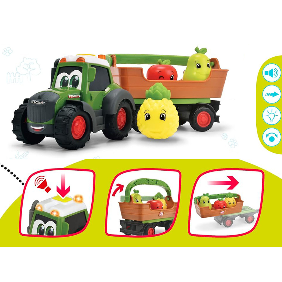 Freddy Fruit Trailer yra spalvingas ir interaktyvus žaislas, kuris vaikus nukelia į ūkių ir vaisių rinkimo pasaulį. Rinkinyje yra: žalias Fendt traktorius su draugišku veidu ir didelėmis akimis, ruda priekaba bei trys vaisiai – obuolys, kriaušė ir ananasas.