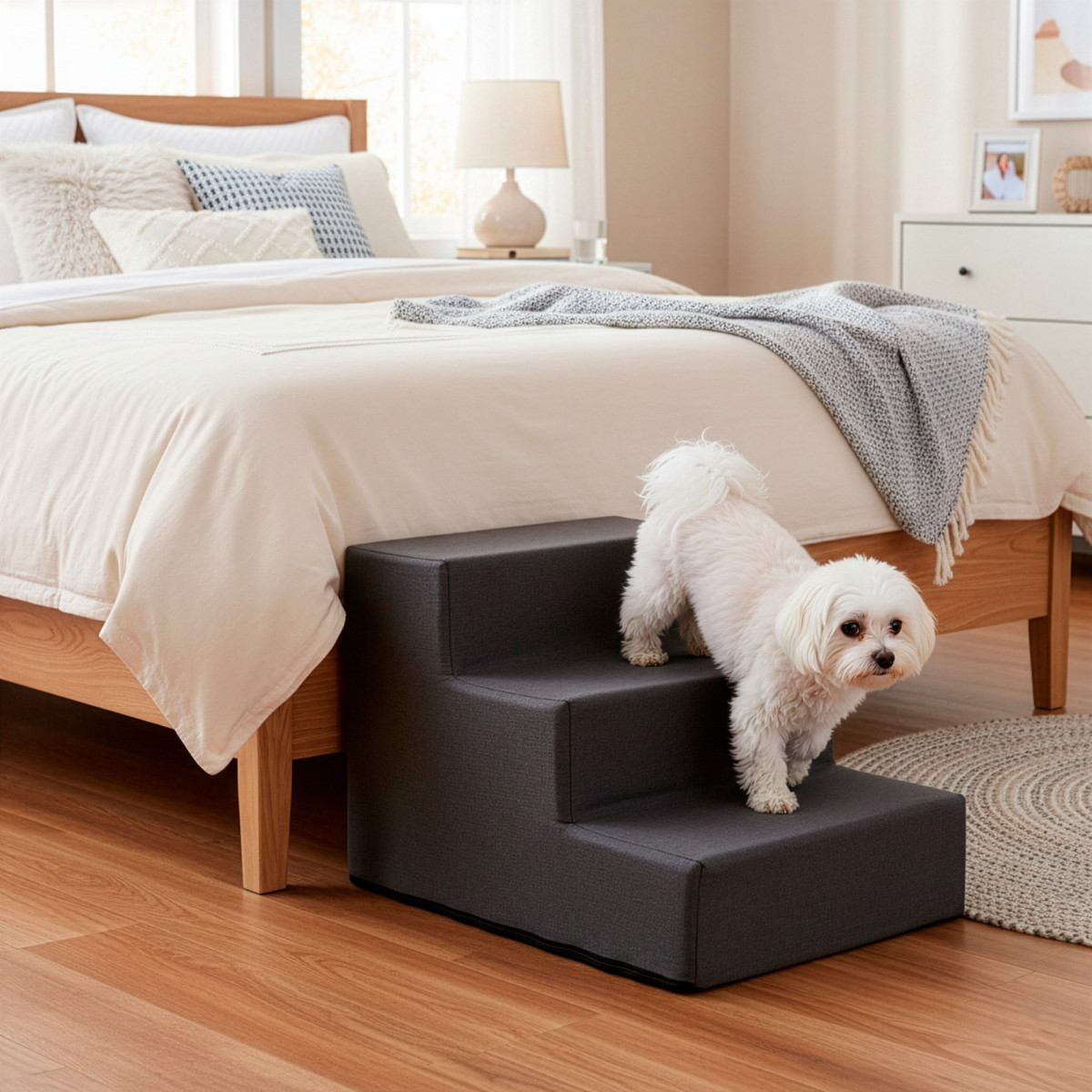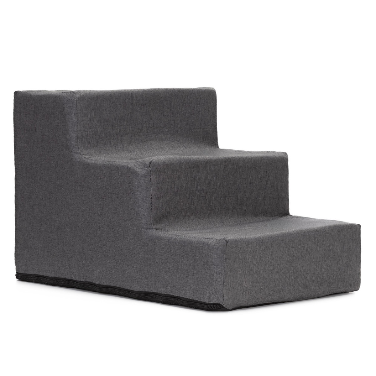Tamsiai pilka spalva suteikia laipteliams neutralų charakterį, kuris dera su dauguma interjerų. Minkšti laipteliai amortizuoja šuns letenas, padidindami komfortą ir paskatindami naudoti. Kompaktiškas dydis leidžia lengvai pastatyti laiptelius bet kurioje namų vietoje, neužimant daug vietos.