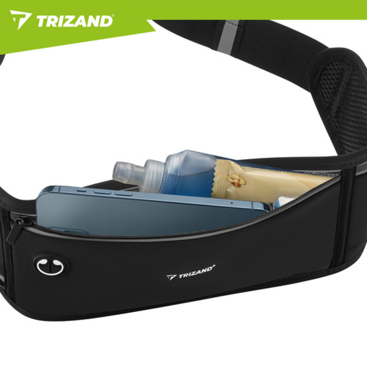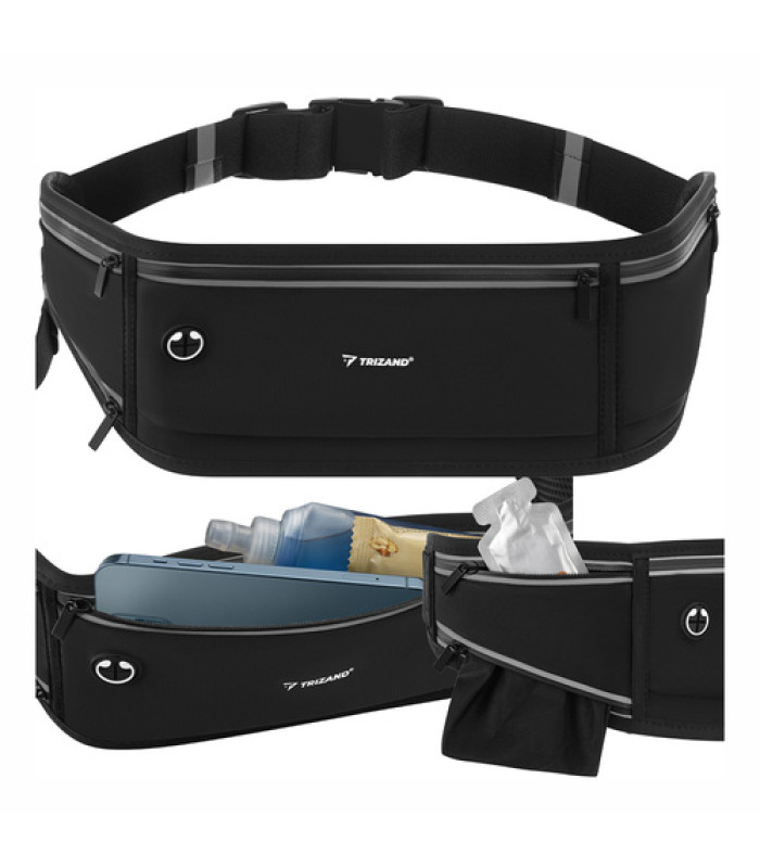 TRIZAND bėgimo diržo juosmens krepšys, sportinis krepšys telefonams iki 7 colių + atšvaitai ir reguliuojamas elastingas juosmuo