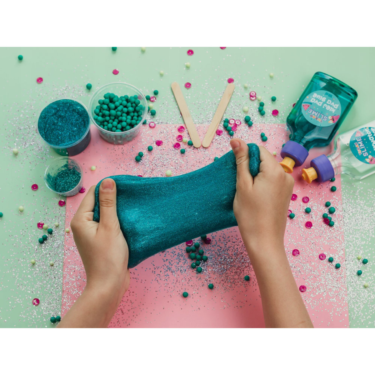 Turkio spalvos slime žaviai kvepia arbūzu, o pridėjus mėlyno blizgučio galima pasiekti akinantį efektą.