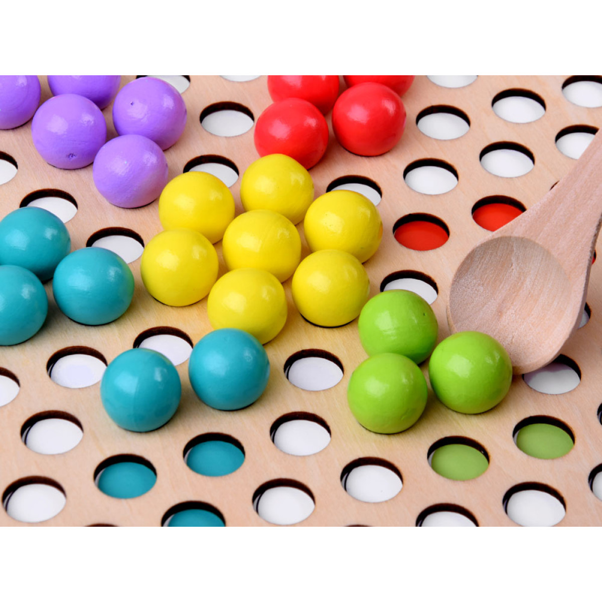 - Lavina rankų įgūdžius - vaikas turi manipuliuoti karoliukais, kas padeda lavinti smulkiąją motoriką ir rankų bei akių koordinaciją.