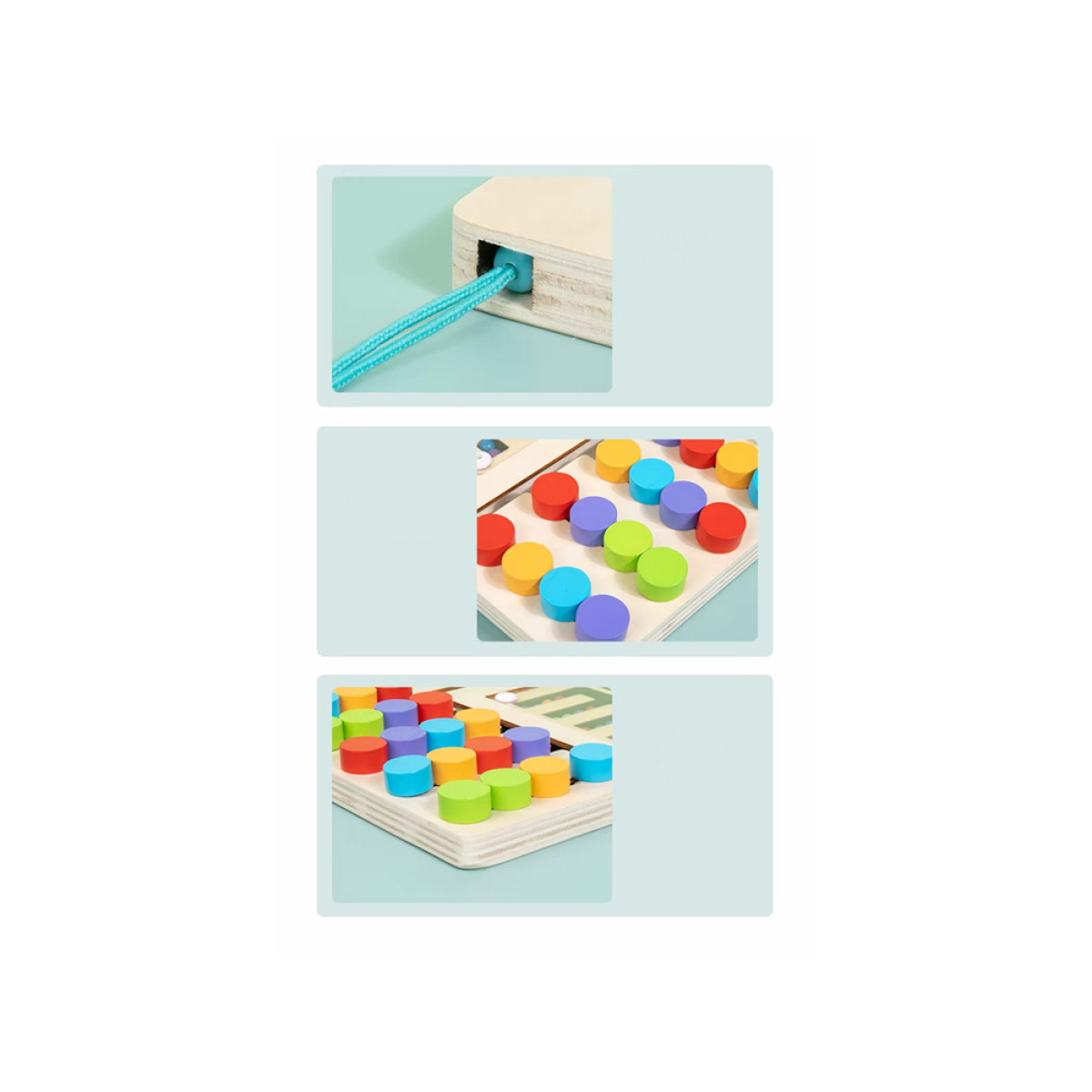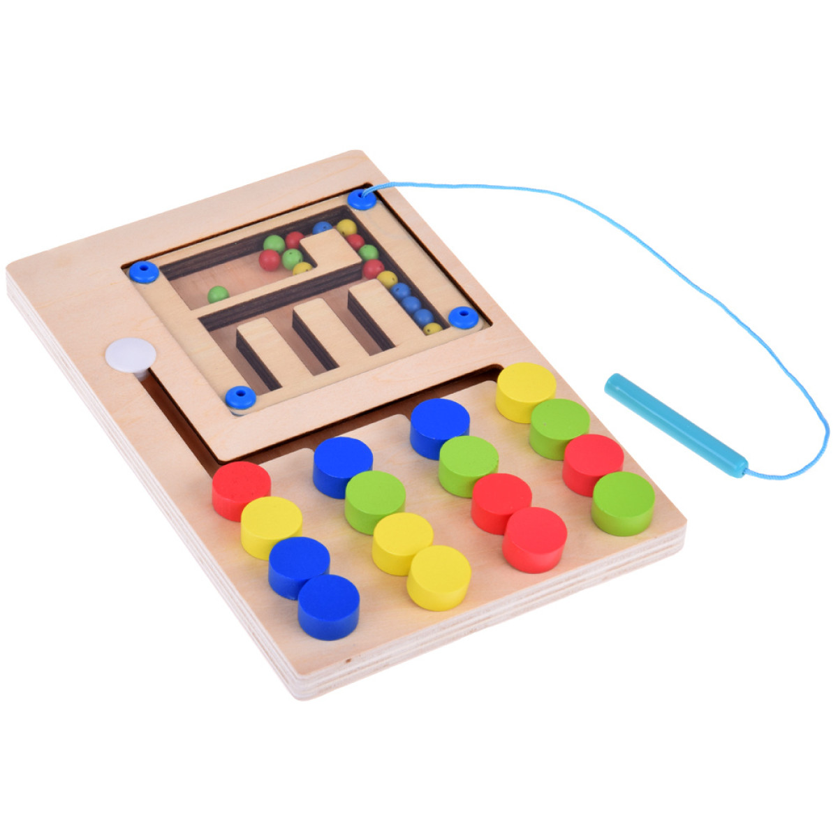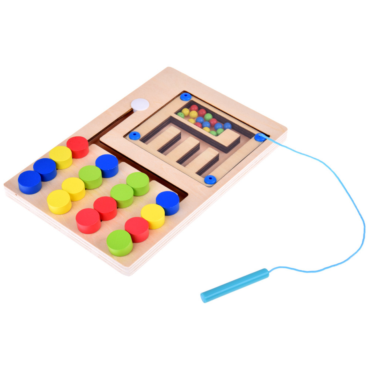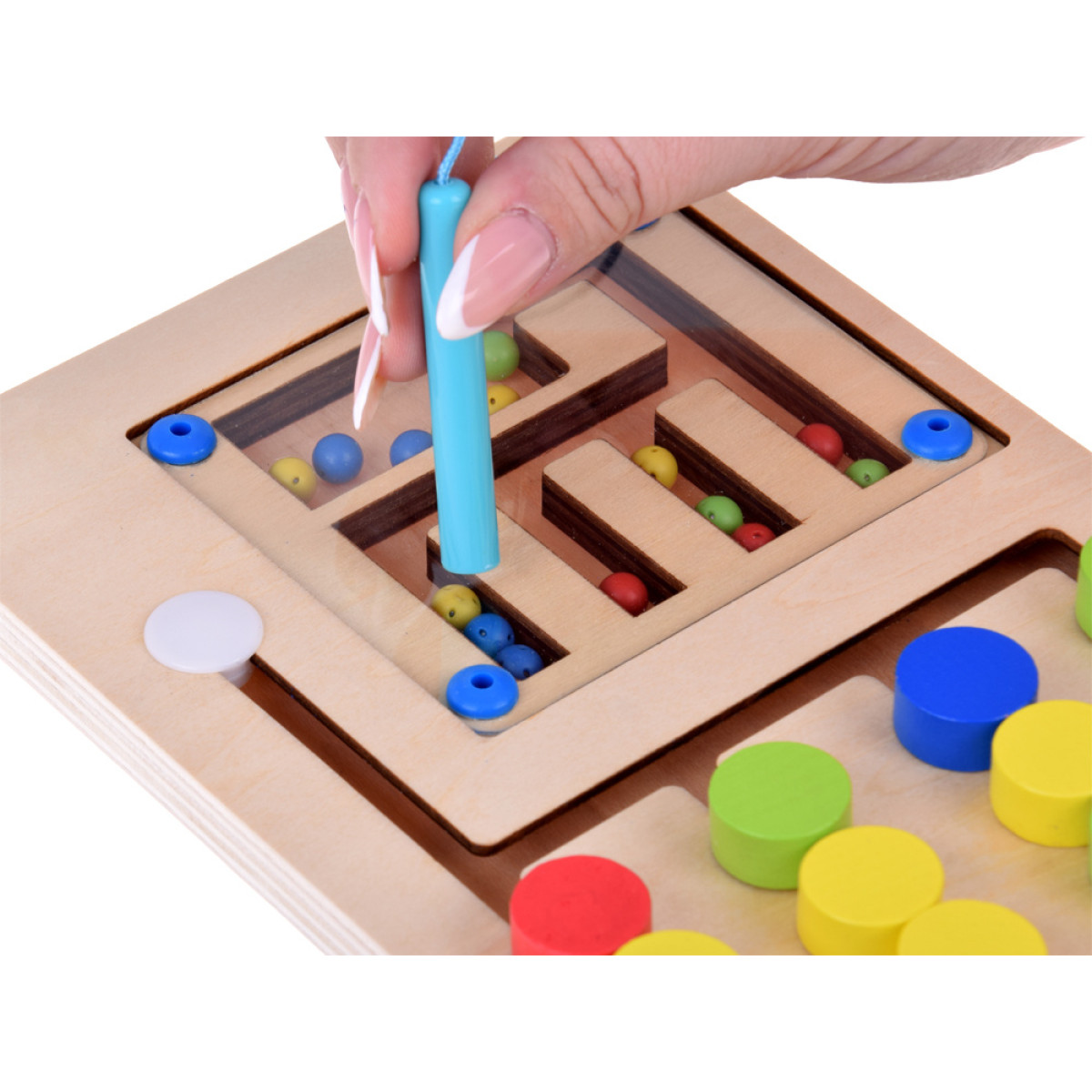 Magnetinė medinė lenta yra puikus edukacinis žaislas, kuris skatina vaikus kūrybiškai žaisti. Naudojant magnetinį pieštuką, vaikai gali perkelti spalvotus kamuoliukus, atkuriant matomą išdėstymą apatinėje lentos dalyje. Tai įdomus iššūkis, kuris įtraukia ne tik mažuosius!