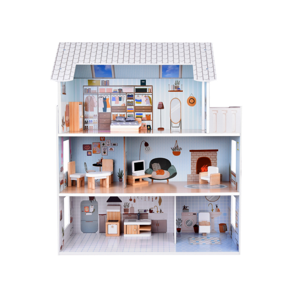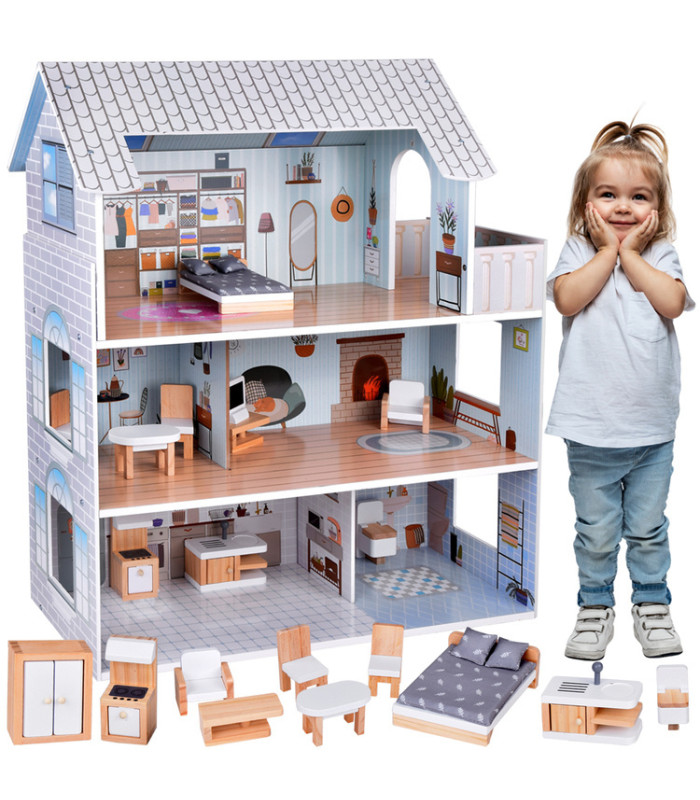 Medinis namelis suteiks kiekvienai mergaitei daug džiaugsmo ir kūrybiško žaidimo galimybių. Ši stilinga vila su elegantiškais baldais leidžia sukurti unikalų interjerą pagal savo pageidavimus. Jis turi tris aukštus, kiekvienas kruopščiai suprojektuotas ir apstatytas. Puikiai tinka Barbie ar Anlily tipo lėlėms, kurias taip pat galite rasti Jokomisiada parduotuvėje.
