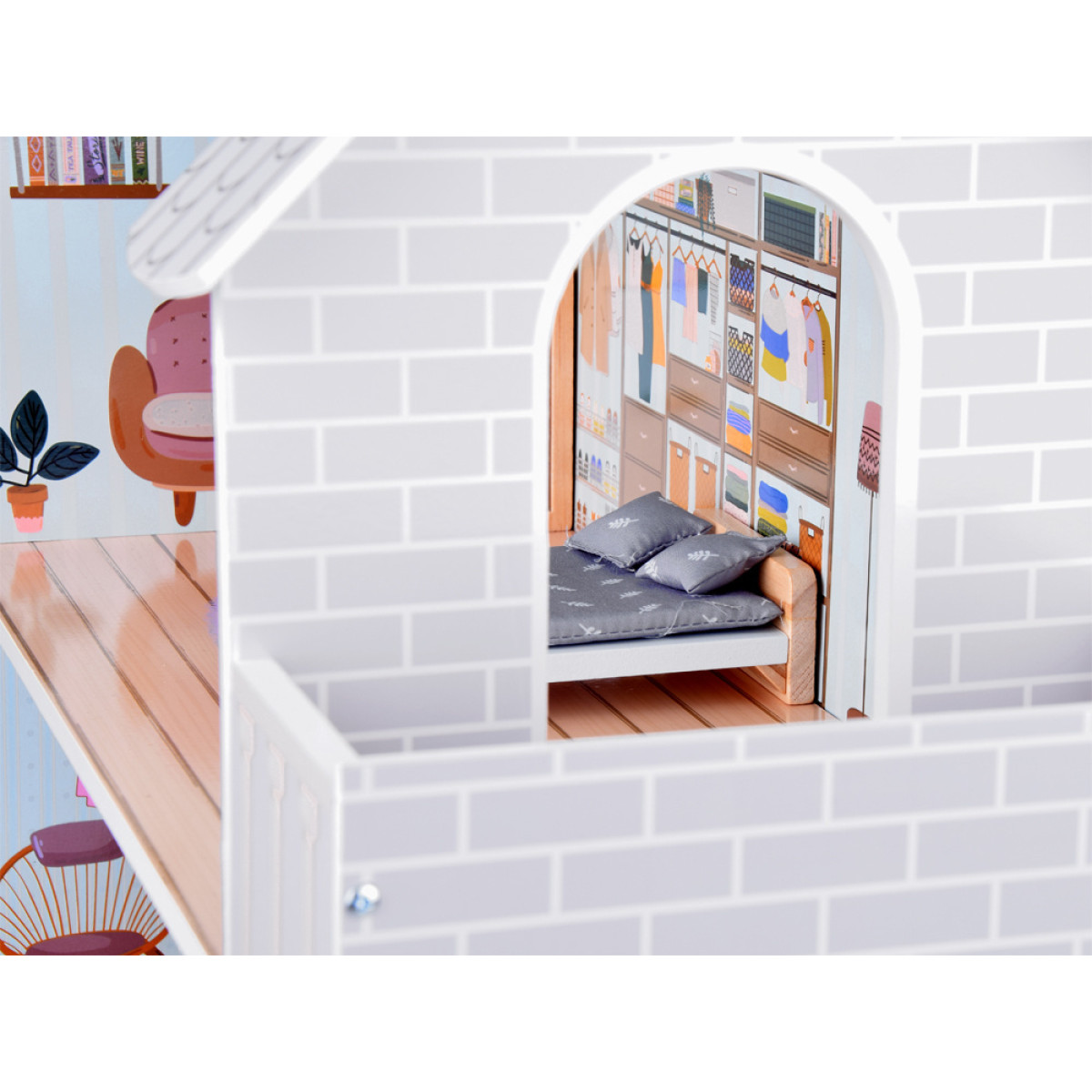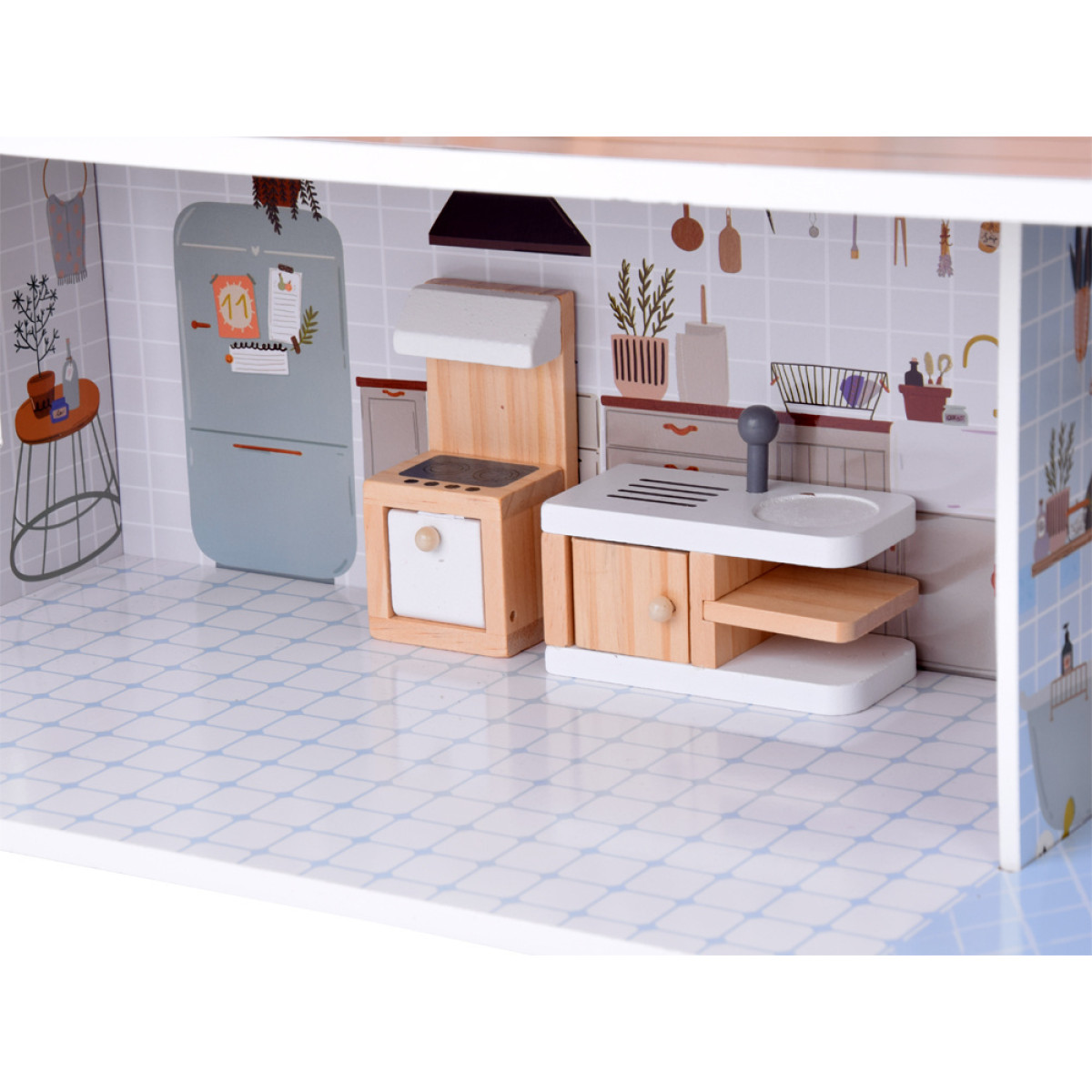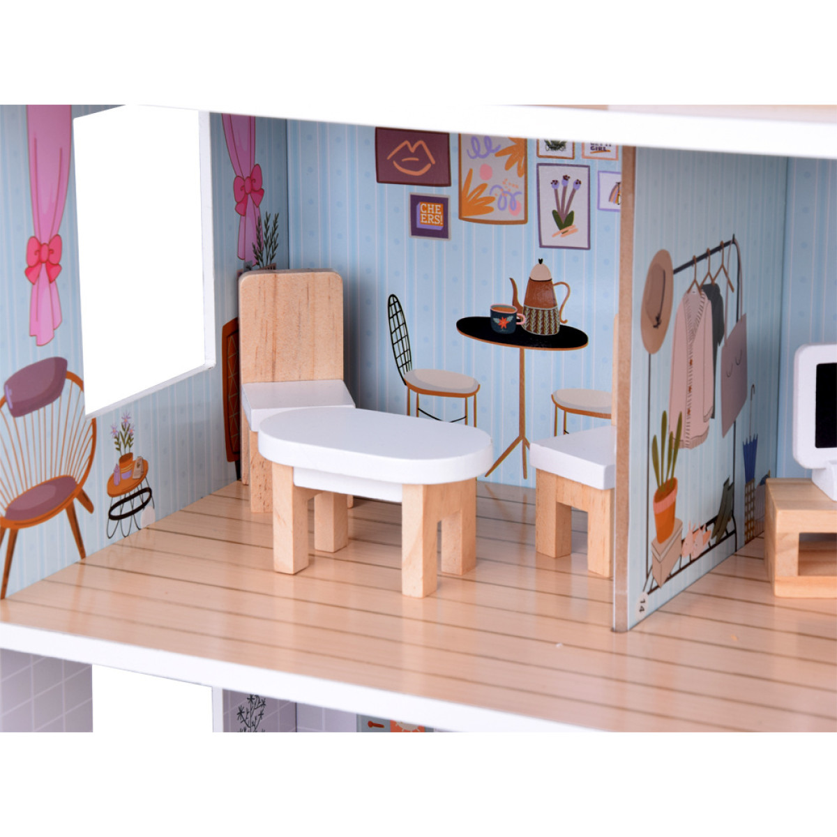 Šis mielas medinis lėlių namelis yra puiki dovana vaikams, skatinanti jų kūrybiškumą ir užtikrinanti saugumą. Namelis su savo išskirtine estetika ir smulkiai suprojektuotomis patalpomis užtikrina valandų valandas įdomių žaidimų.