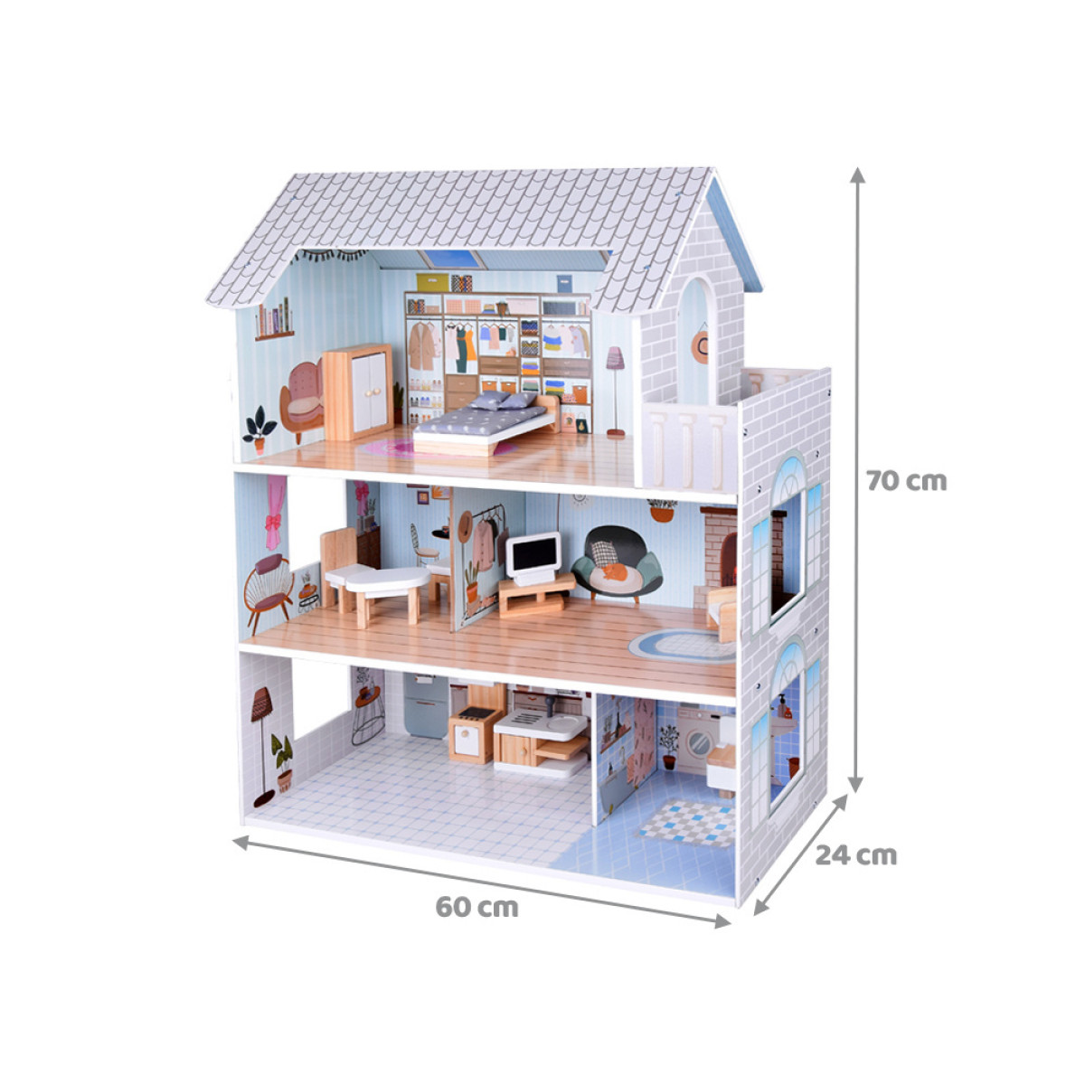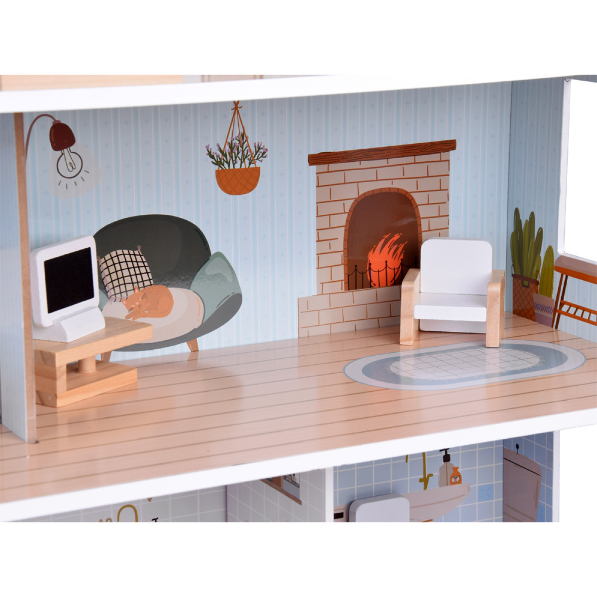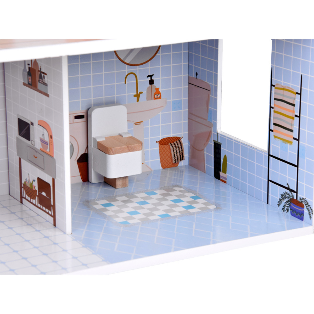Šis mielas medinis lėlių namelis yra puiki dovana vaikams, skatinanti jų kūrybiškumą ir užtikrinanti saugumą. Namelis su savo išskirtine estetika ir smulkiai suprojektuotomis patalpomis užtikrina valandų valandas įdomių žaidimų.