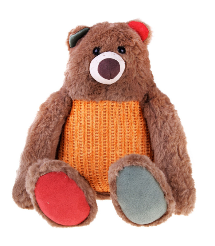 Žaislas yra padengtas minkštu, švelniu, rudos spalvos kailiu, o priekyje meškiuko pilvukas yra medaus spalvos. Ausys ir pėdos yra žalios ir raudonos spalvos, nosis ruda su strazdanomis, o akys – plastikinės ir rudos spalvos. Visa maskotė yra labai žavinga.