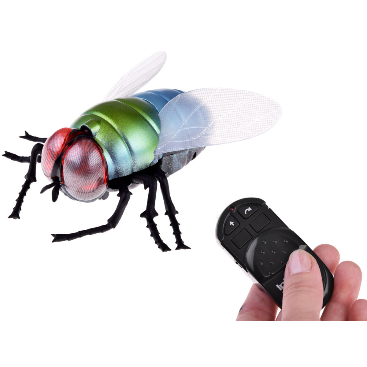 Įdėkite musę į matomą vietą ir valdykite ją, kad išgąsdintumėte draugus. Puikiai juda ant lygių paviršių.