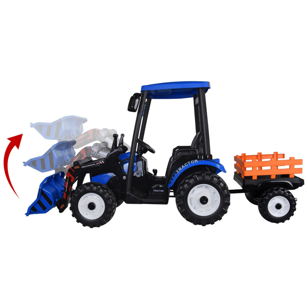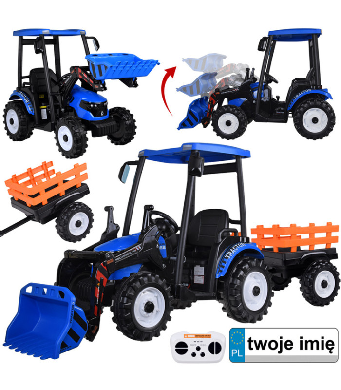 Elektrinis traktorius su priekaba ir kaušu yra kiekvieno mažo ūkininko svajonė! Naudodami šią įrangą, pavasario tvarkymas sode taps lengvas kaip pyragas! Traktorių varo 2 galingi 24V 200W varikliai, kurie užtikrina sklandų važiavimą tiek asfaltu, tiek trinkelėmis, tiek žole. Traktorius yra kruopščiai sukurtas, kad atitiktų tikrąją versiją. Jis neabejotinai patiks vaikams ir jų draugams.
