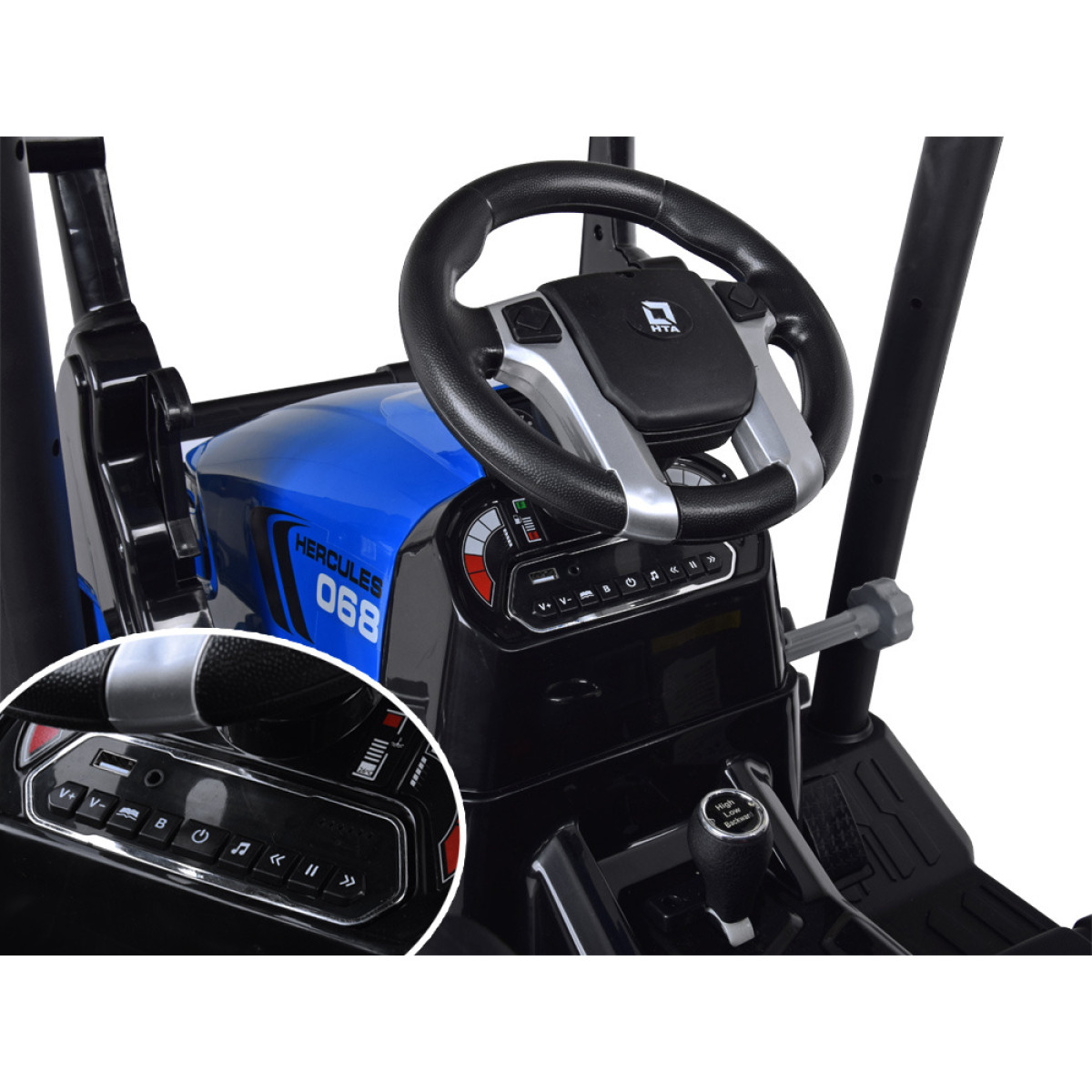 Traktorius įjungiamas jungikliu po sėdyne, kuris taip pat įjungia priekinius žibintus. Norint pradėti važiuoti, tereikia nuspausti akseleratoriaus pedalą. Traktorius turi stabdį, kuris veikia atleidus pedalą. Vairas, maitinamas 2xAA baterijomis (neįtrauktos į komplektaciją), turi mygtukus, kuriuose slypi garsinio signalo garsai. Po vairu yra muzikos panelis.