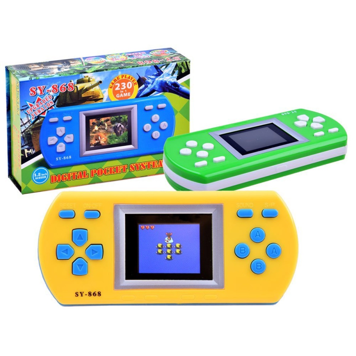 Elektroninė, kišeninė žaidimų konsolė yra puikus pasirinkimas tiek mažiems, tiek dideliems vaikams. Ši nuostabi konsolė patenkins net ir išrankiausio žaidimų mėgėjo poreikius. Ji turi iš anksto įdiegtus 230 žaidimų. Konsolė turi modernų dizainą, aiškiai matomą, ryškų ir spalvingą LCD ekraną, kuris rodo aiškų vaizdą, gražią grafiką ir sodrias spalvas. Ergonomiškas mygtukų išdėstymas leidžia visiškai kontroliuoti žaidimą. Integruotas garsiakalbis su garso reguliavimo galimybe užtikrina puikius garso efektus.