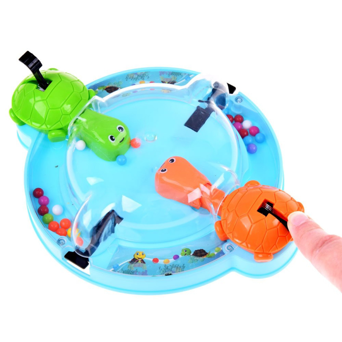 Žaidimas Galingi Vėžliai yra linksma pramoga dviem žmonėms. Vėžliai mėgsta valgyti, ir tas, kuris suvalgys daugiausiai kamuoliukų, laimi. Naujas kamuoliukų ir vėžlių laikymo būdas leidžia greitai susitvarkyti po žaidimo. Galingi Vėžliai – puikus užsiėmimas tiek vaikams, tiek tėvams. Patogiai sėdime ir maitiname alkanus gyvūnėlius. Apvalioje pagrindo plokštėje rasite du vėžlius, kuriems tereikia paspausti uodegėlę, kad atidarytų savo burnas. Išsirinkite po vieną gyvūną ir pabandykite su juo sugauti kuo daugiau kamuoliukų, riedančių per lentą. Kai jūsų vėžliai suvalgys visus kamuoliukus, suskaičiuokite juos ir sužinokite, kas laimėjo. Laimi tas, kuriam pavyko suvalgyti daugiausiai.